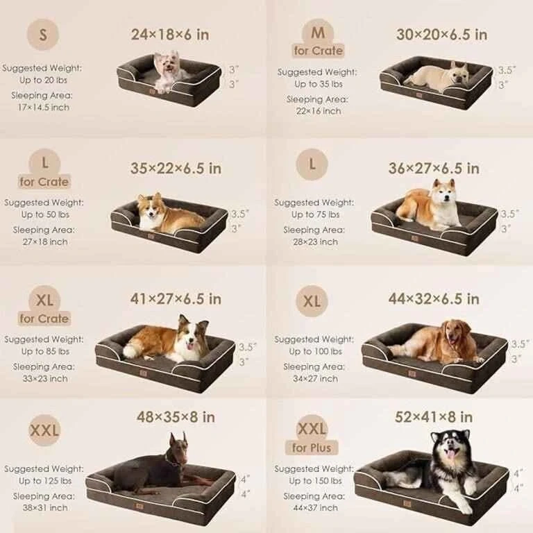The EHEYCIGA orthopedic dog bed features memory foam and egg crate foam to provide even support and pressure relief. It offers a good balance of softness and support, making it particularly suitable for elderly dogs to alleviate joint pressure.