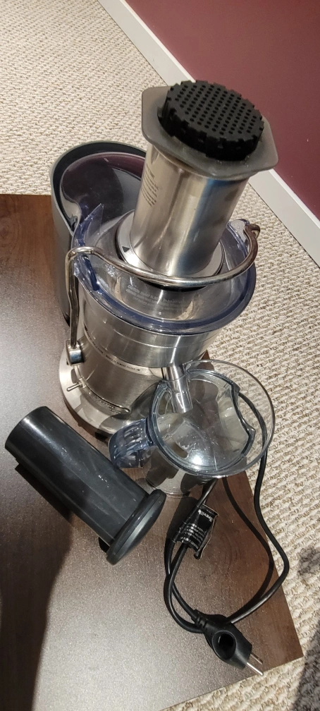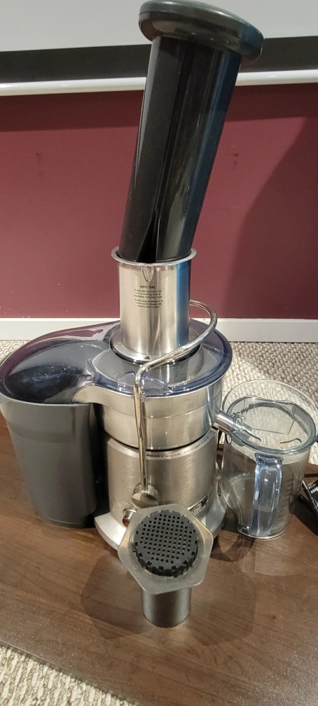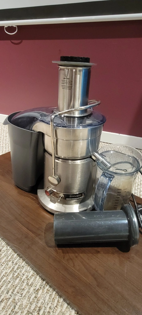 Breville Juice Fountain Plus juicer. Stainless steel. Includes pulp container and additional parts. used for a year then has been sitting in the basement. don't see will be using it anymore. paid about $500. this is the elite model.