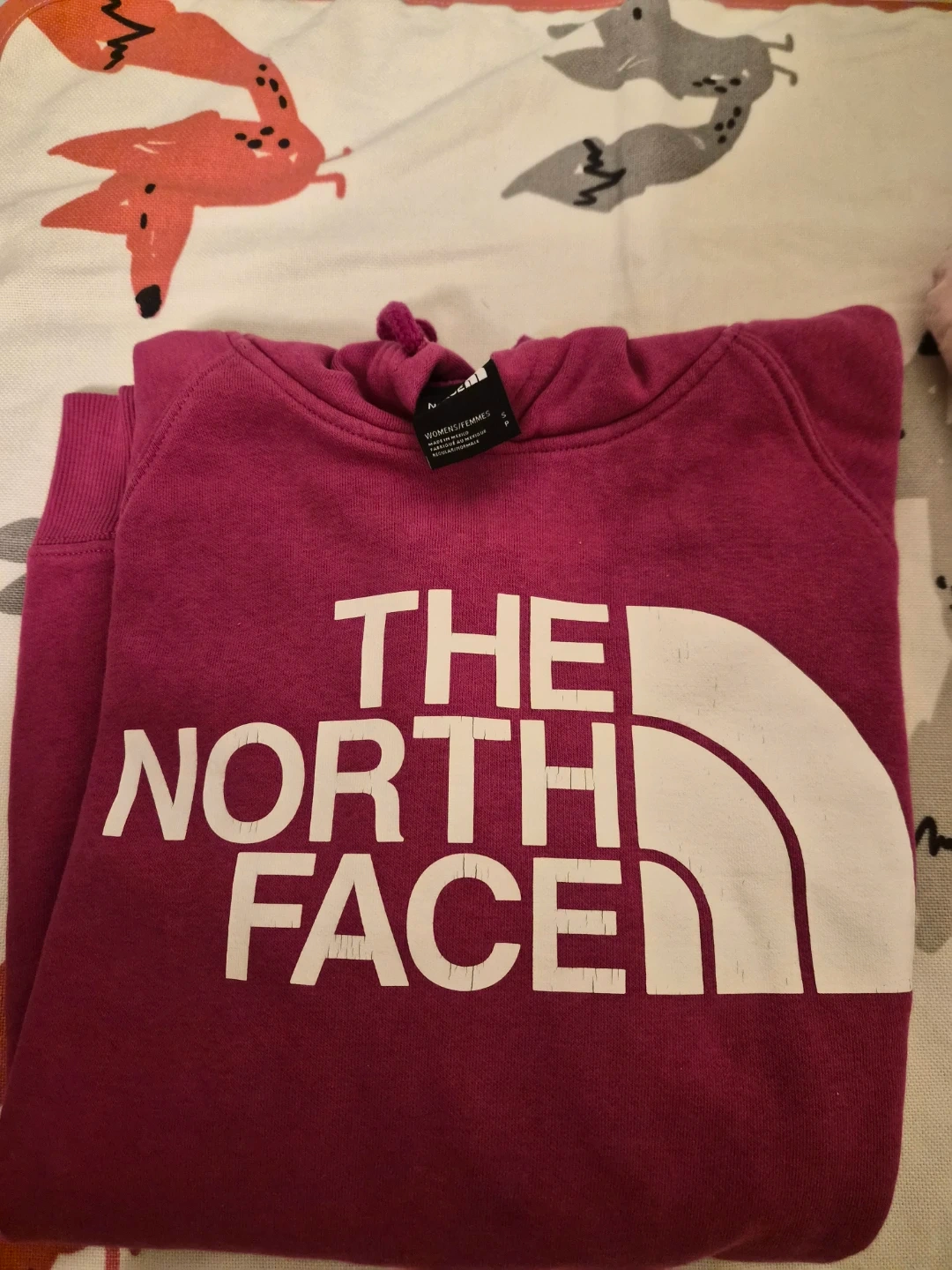 A cozy pink used hoodie from The North Face. It's a women's size small. Great for casual wear or outdoor adventures!