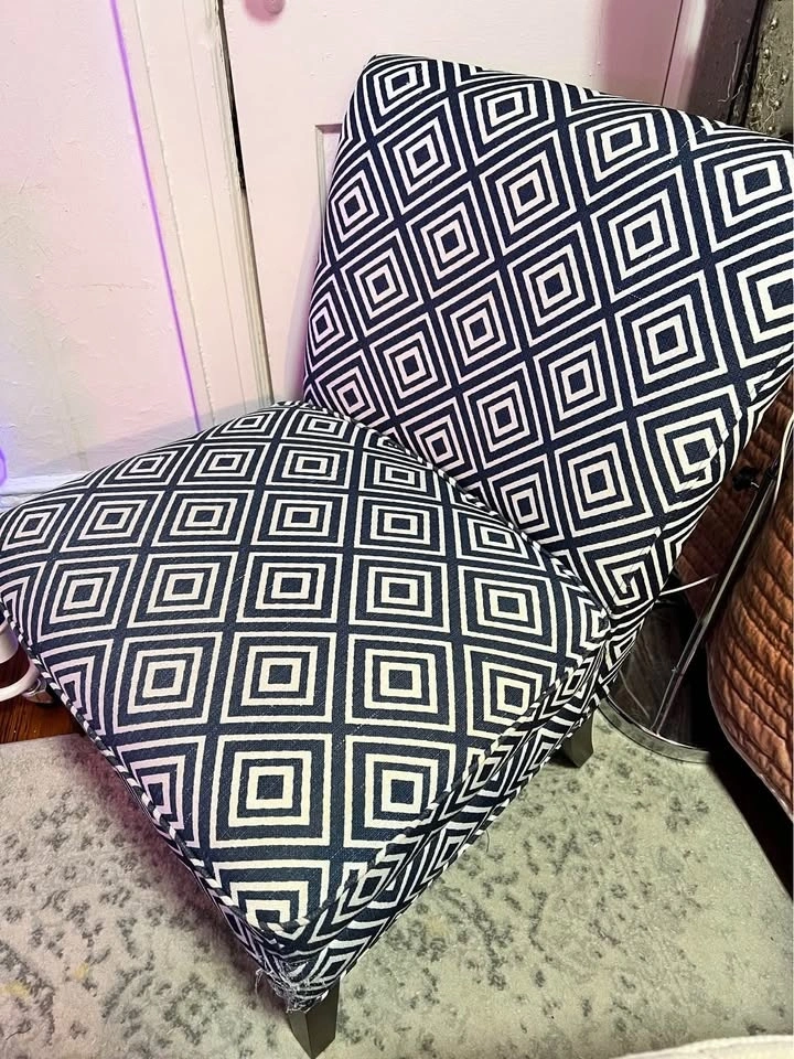 Blue and white chair in good condition.