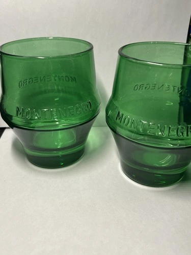 Set of 2 vintage Montenegro emerald green drinking rock tumblers, 12oz with thick bottoms. Condition is Used.