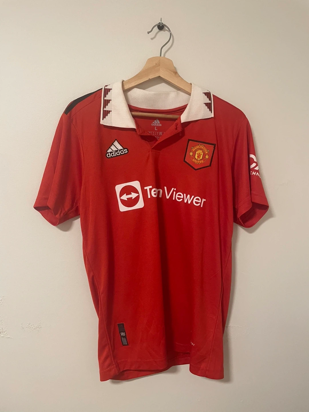 Selling a red Adidas Manchester United jersey with Ronaldo's name and number 7 on the back! A little worn but still in decent condition.