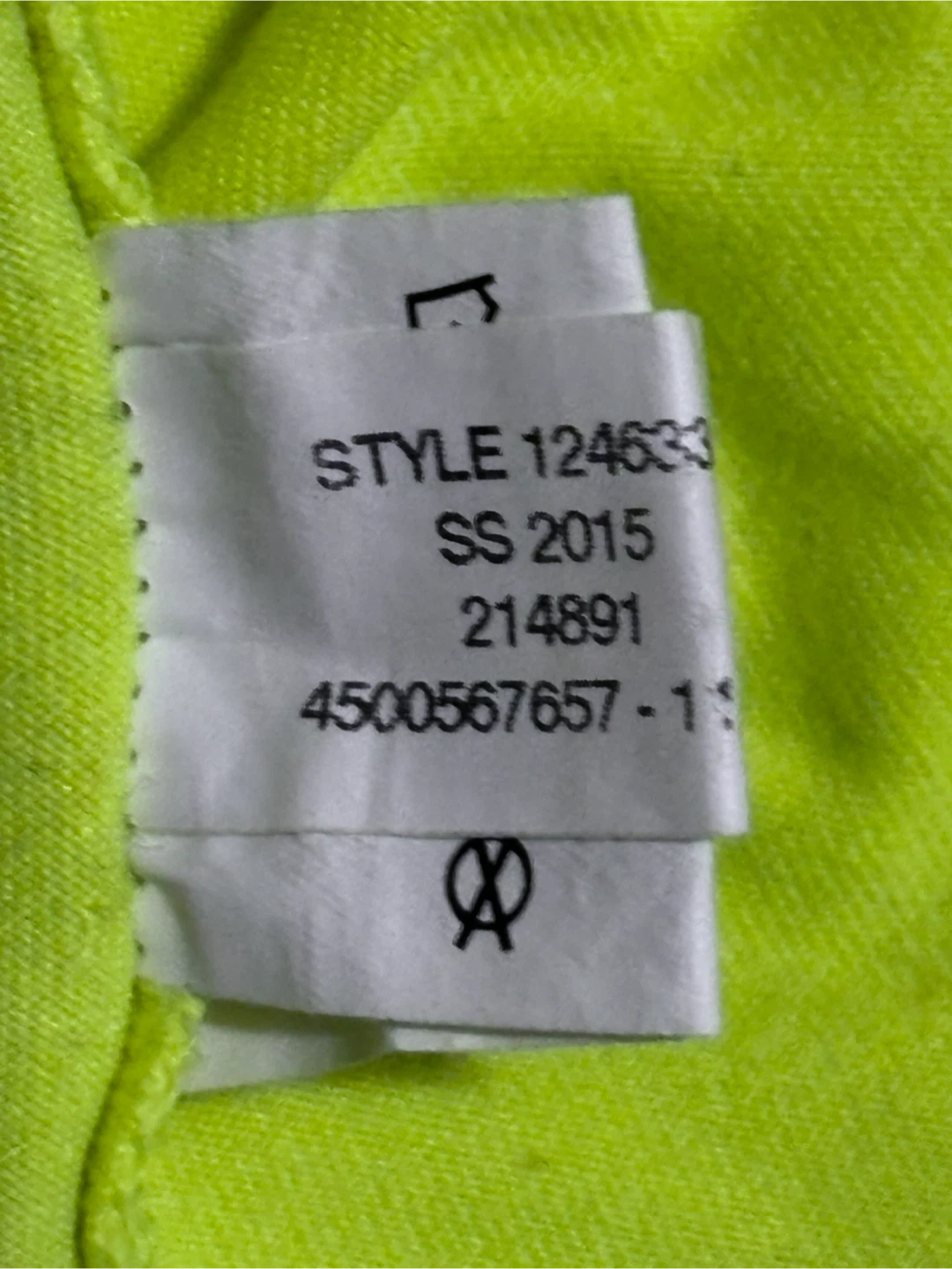 Under Armour long sleeve shirt in a bright neon yellow. It features a fitted design and a 1/4 zip closure. Made with HeatGear fabric for moisture-wicking performance.