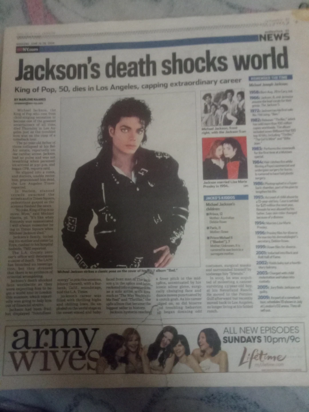 This is a newspaper from 'amNY' featuring the headline 'Michael Jackson's death shocks world'. It also includes a section about Farrah Fawcett's passing. The newspaper is dated June 26-28 2009. It's a piece of news history from that significant day. WHO DOESN'T LOVE KING OF POP. BE THE LUCKY ONE TO OWN A PIECE OF HISTORY.