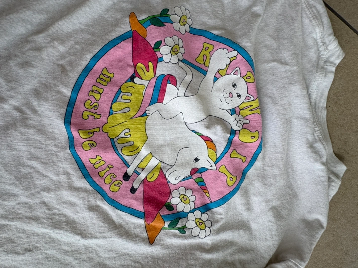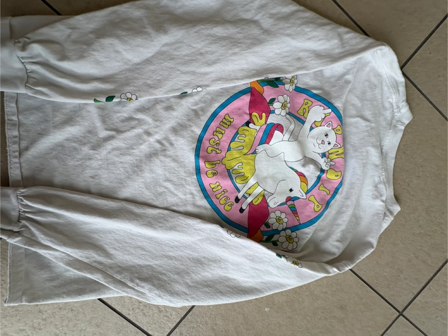 This white long sleeve t-shirt features a colourful graphic of two cats and a unicorn with the text 'must be nice'. It's made from soft cotton. Perfect for casual wear, this shirt offers a unique style.