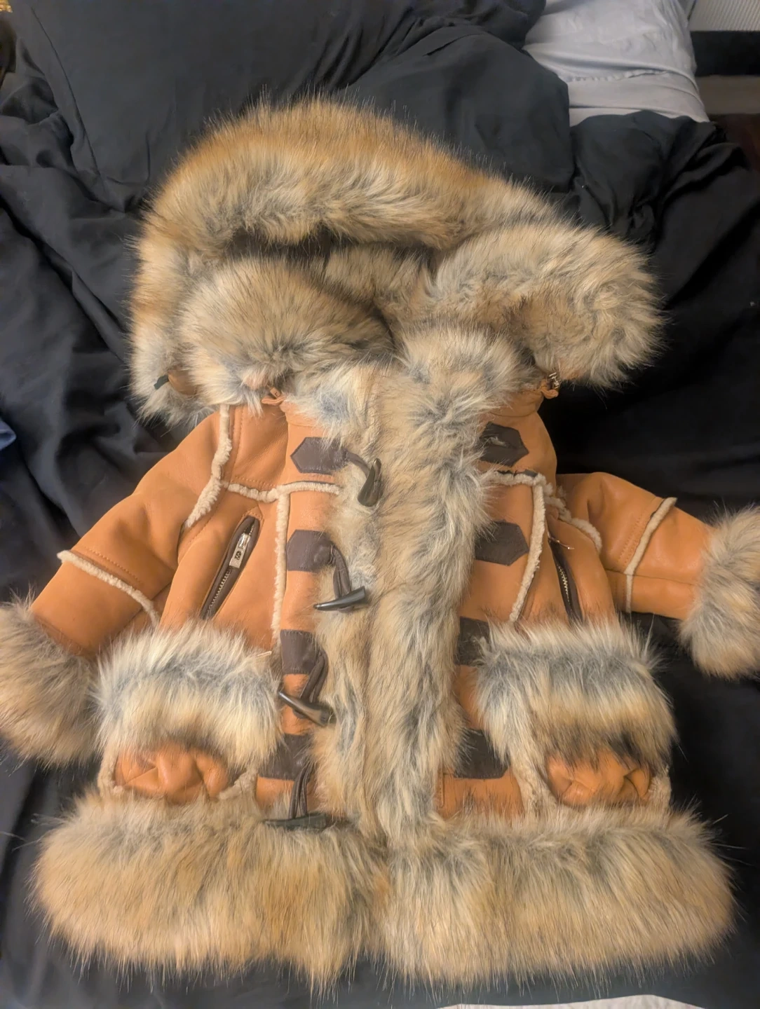 Selling a JC Black Label jacket with fur trim! It's a size 2 and in great condition. The jacket features a hood and toggle closures.