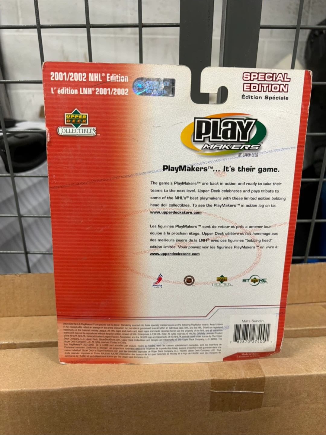 Details:• Player: Mats Sundin• Team: Toronto Maple Leafs• Series: PlayMakers by Upper Deck• Edition: 2001/2002 NHL Special Edition• Bobblehead collectible figure• Includes original packaging