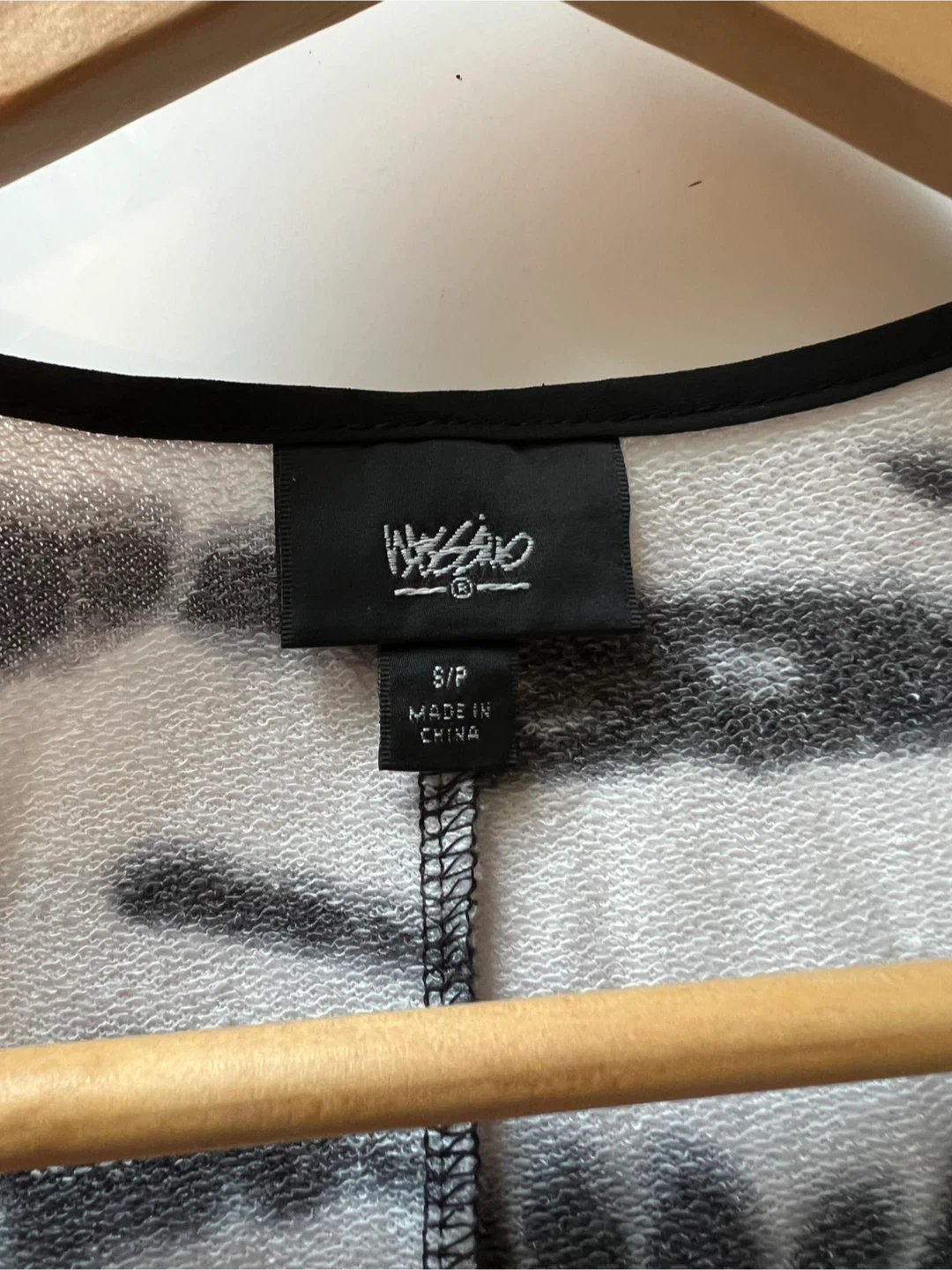This is a women's Mossimo tank dress with a black and white tie-dye pattern. It's a size S/P. The dress has a scooped neckline and a racerback style.