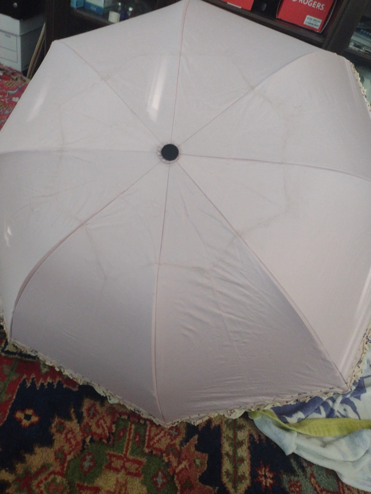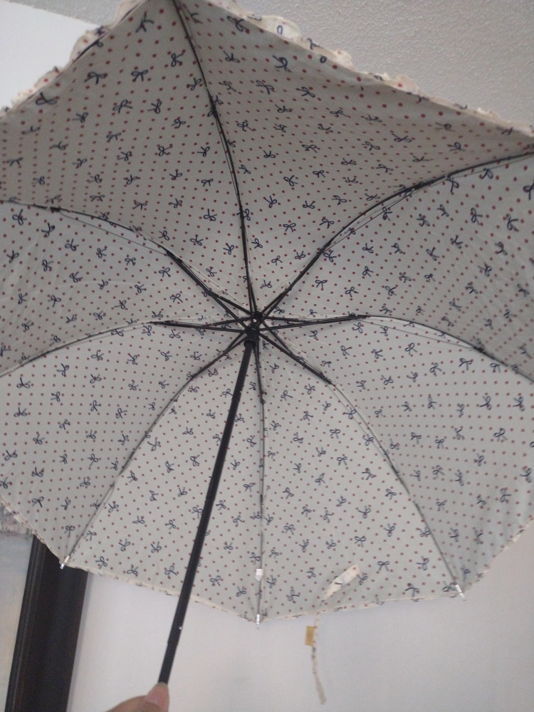 a nice pink umbrella that provides ample shade during sunny days. cute inside shade design it folds up too! perfect for your daily commute as it quite compact does not come with cover case. misplaced it.