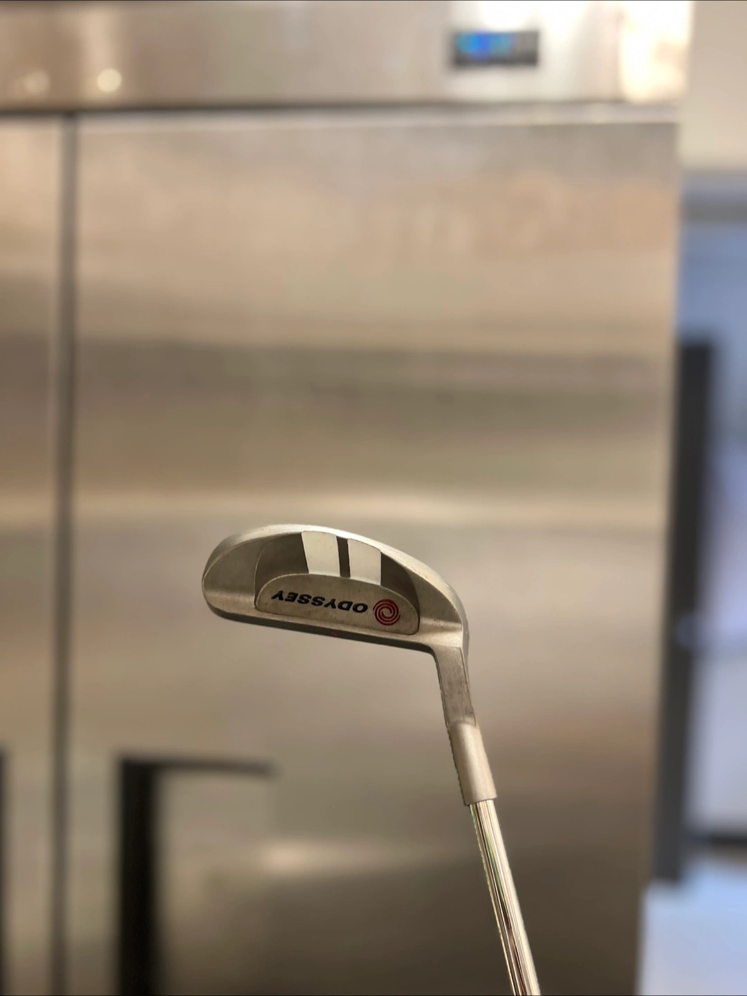 Spalding S-1000 golf club set. Includes various irons, woods, and a putter. TaylorMade R5 cart bag included. One TaylorMade and one Odyssey putter also included. Used condition.