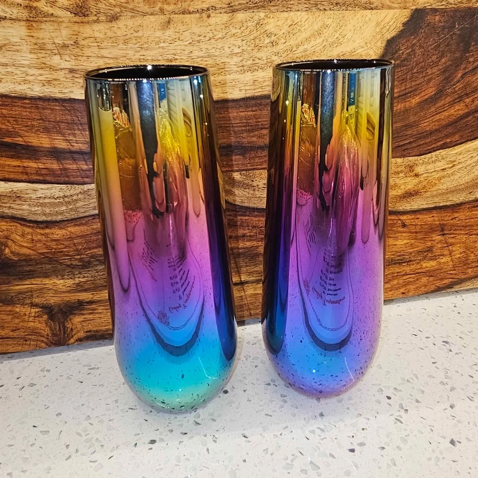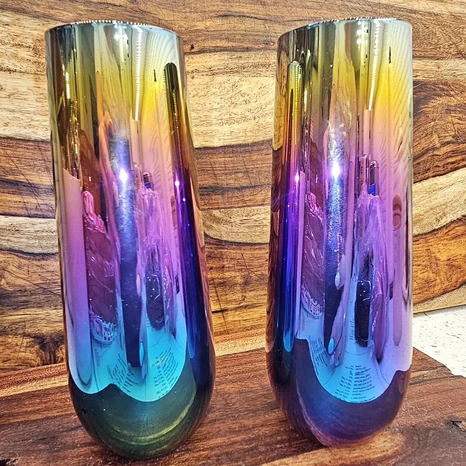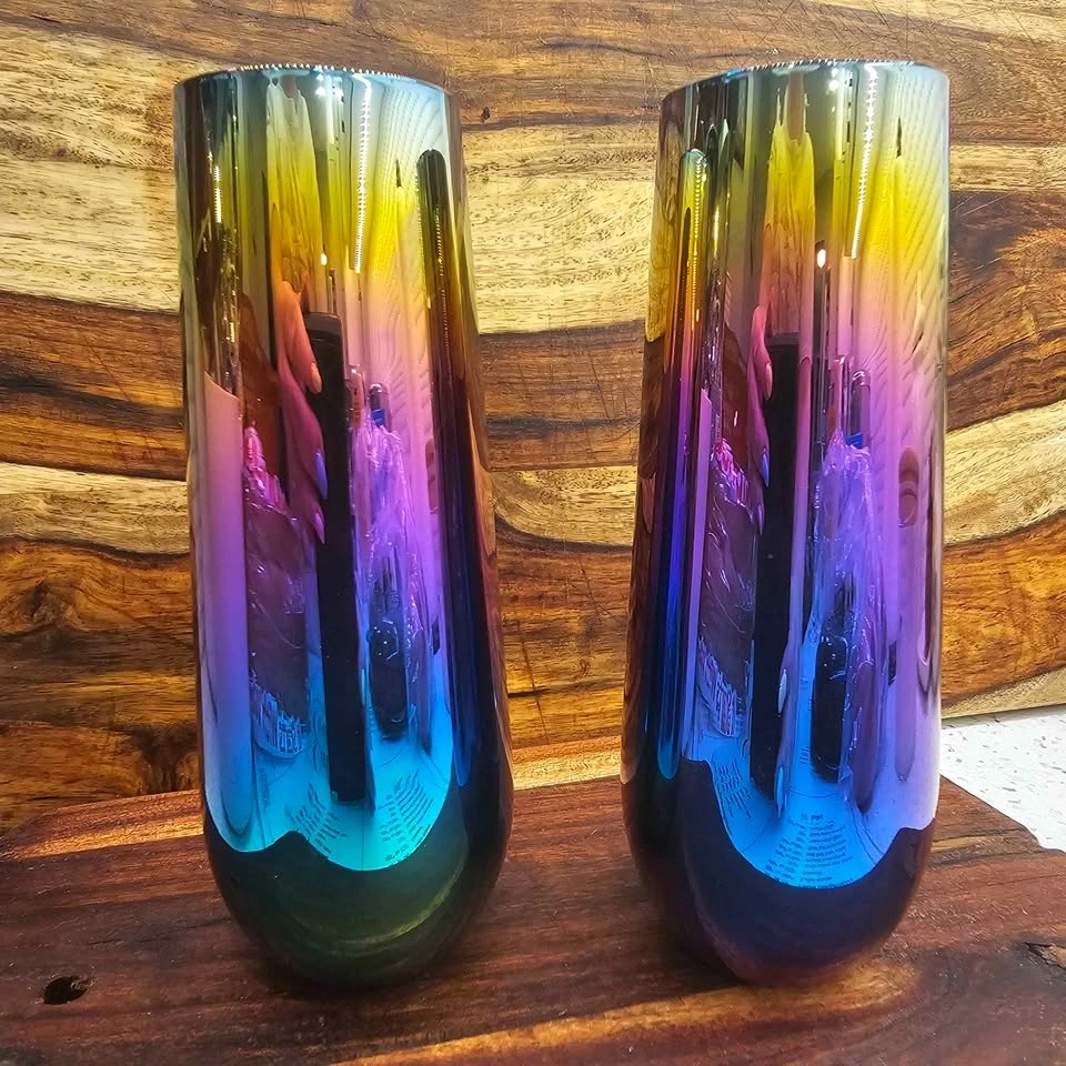 Iridescent Glass Stemless Champagne Glasses / Vases – Set of 2