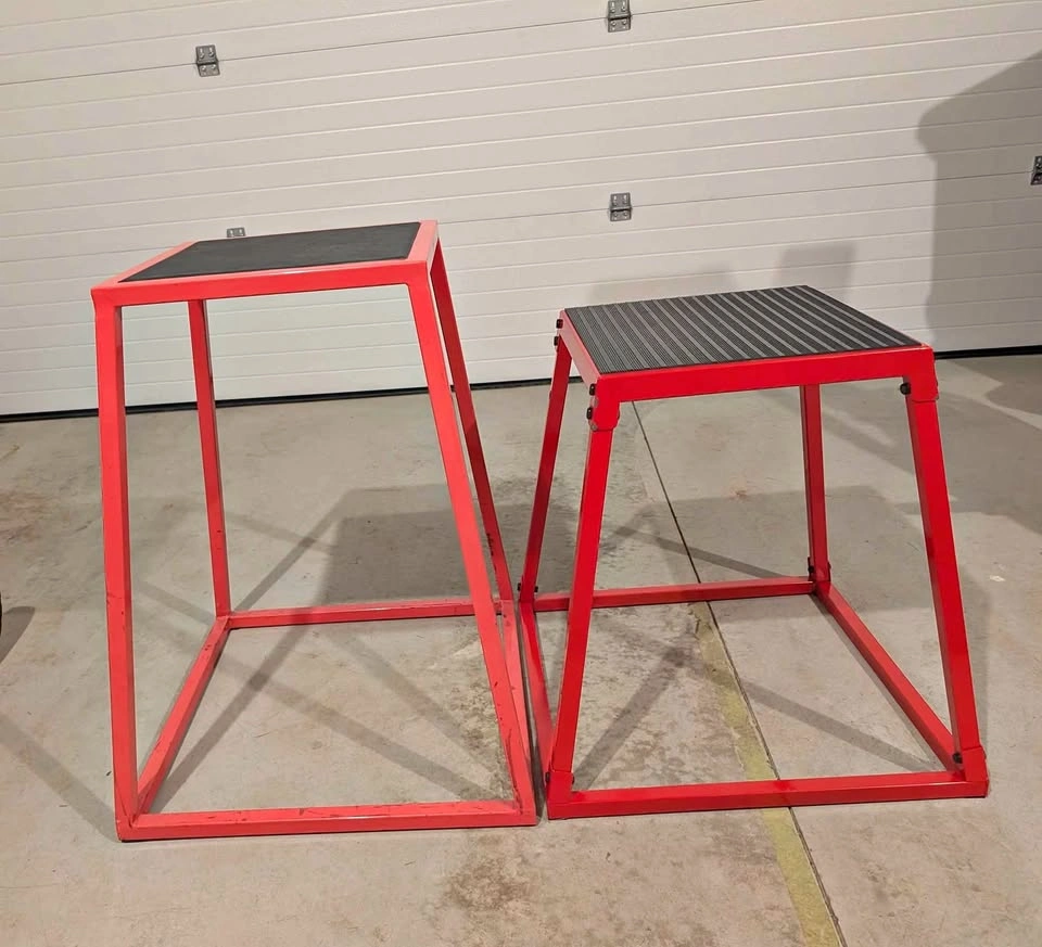 2 sturdy jump boxes, steel frame + non-slip tops. Great for home workouts
