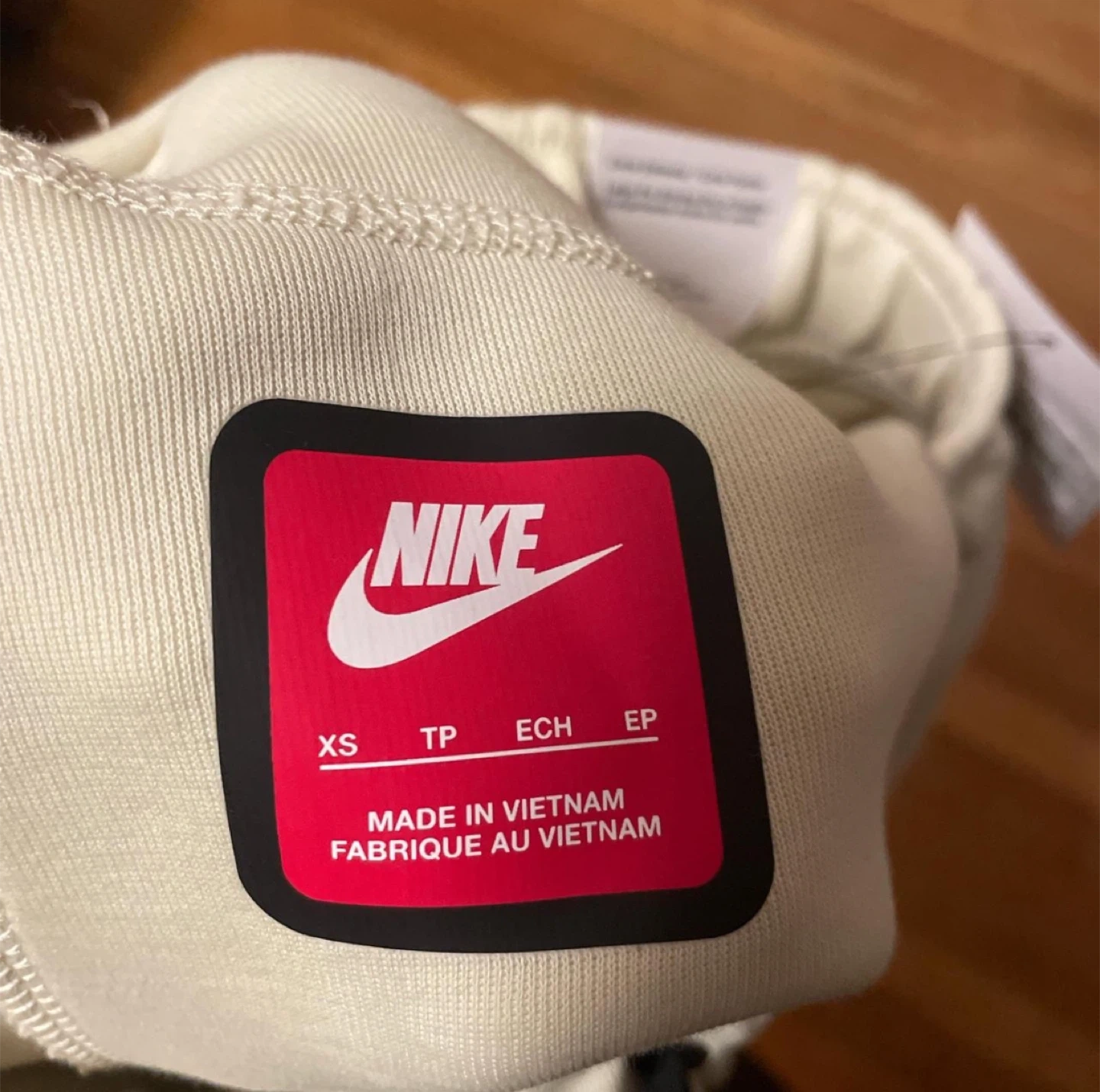 Nike Tech Fleece shorts in XS size. Features a zip pocket on the left side and a drawstring waist. Made in Vietnam. Cotton and polyester blend.