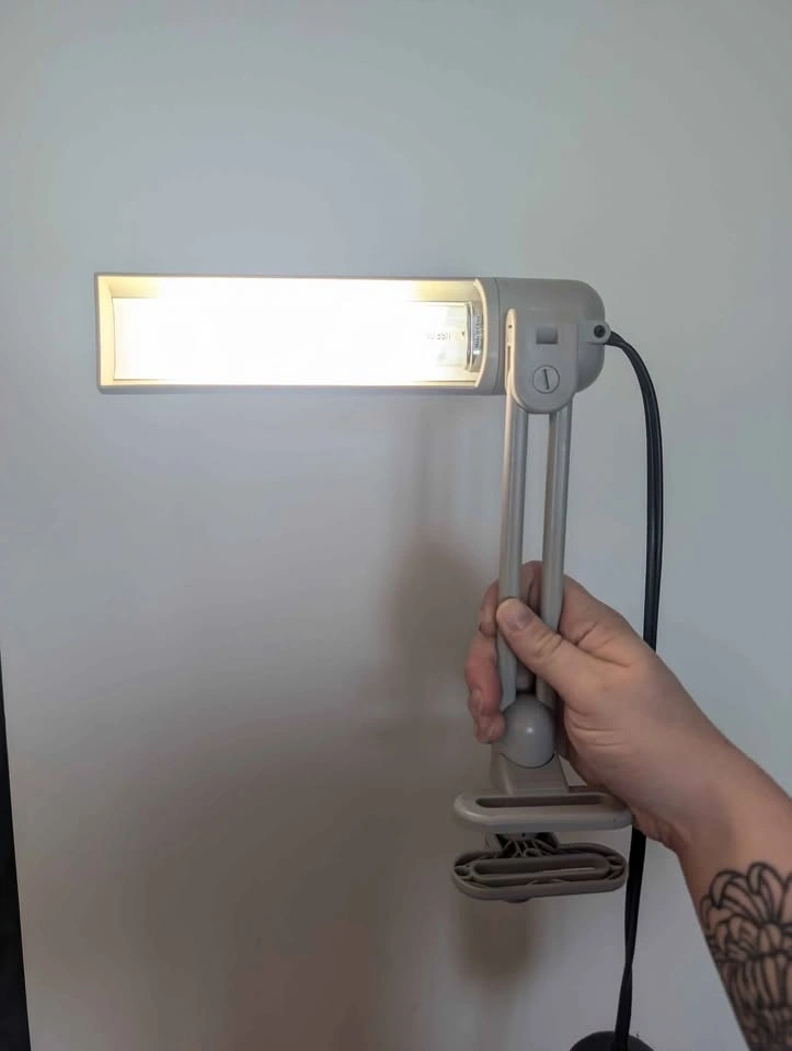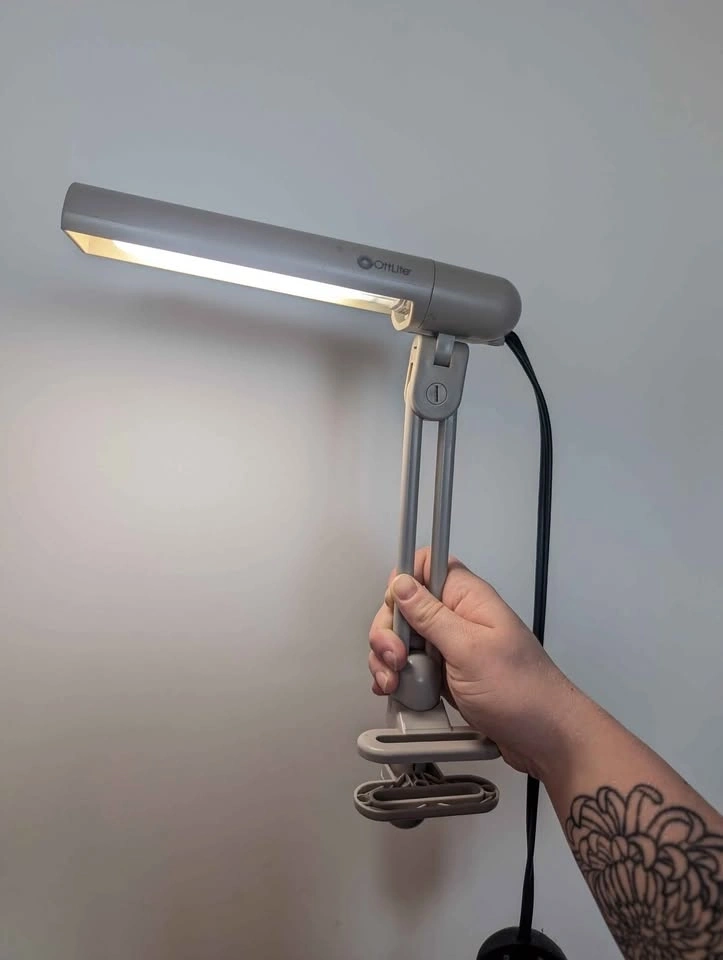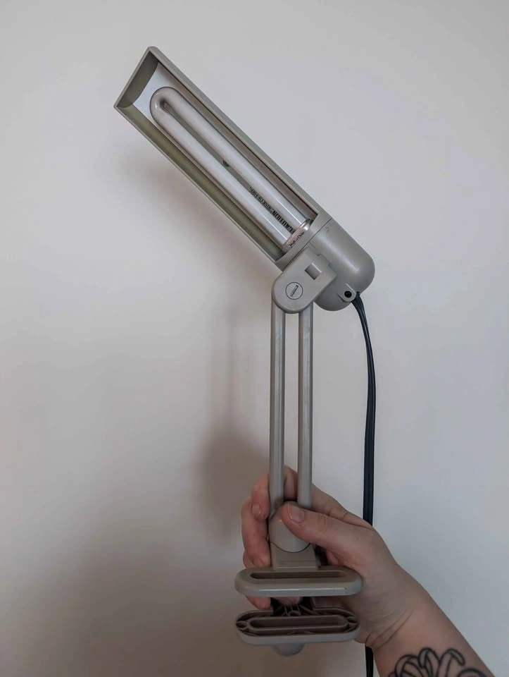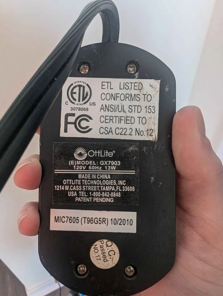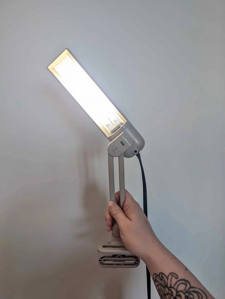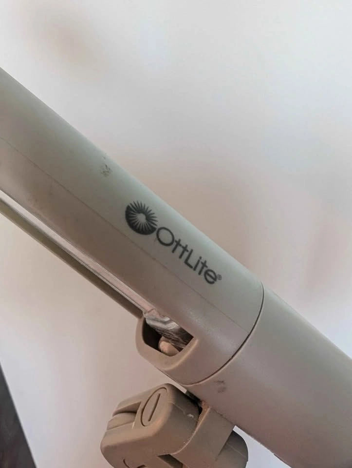 Great condition OttLite Brand Desk Lamp with original Natural Sun Bulb. Made in 2010; discontinued model with twist hinge design. Bulb works perfectly.