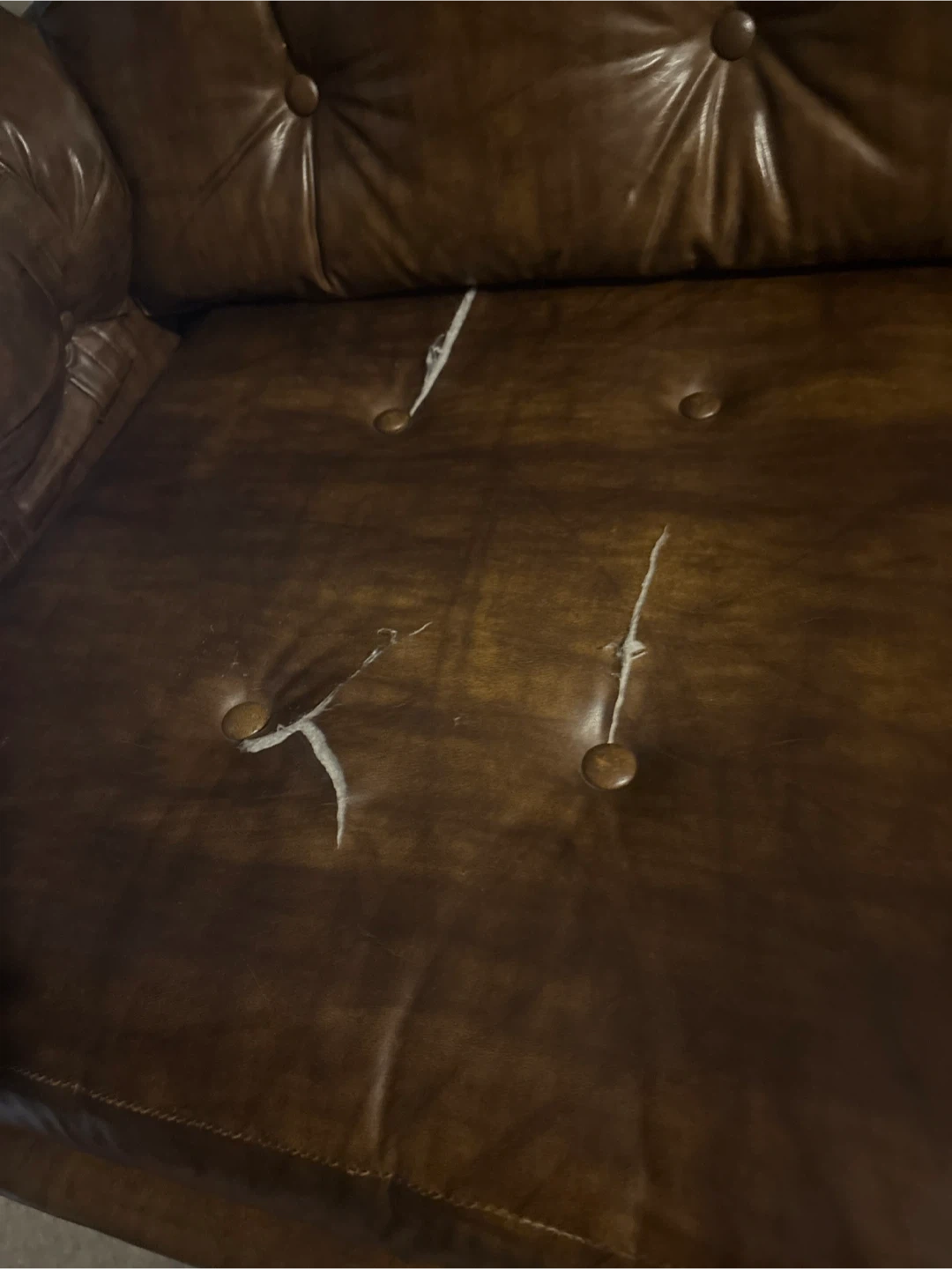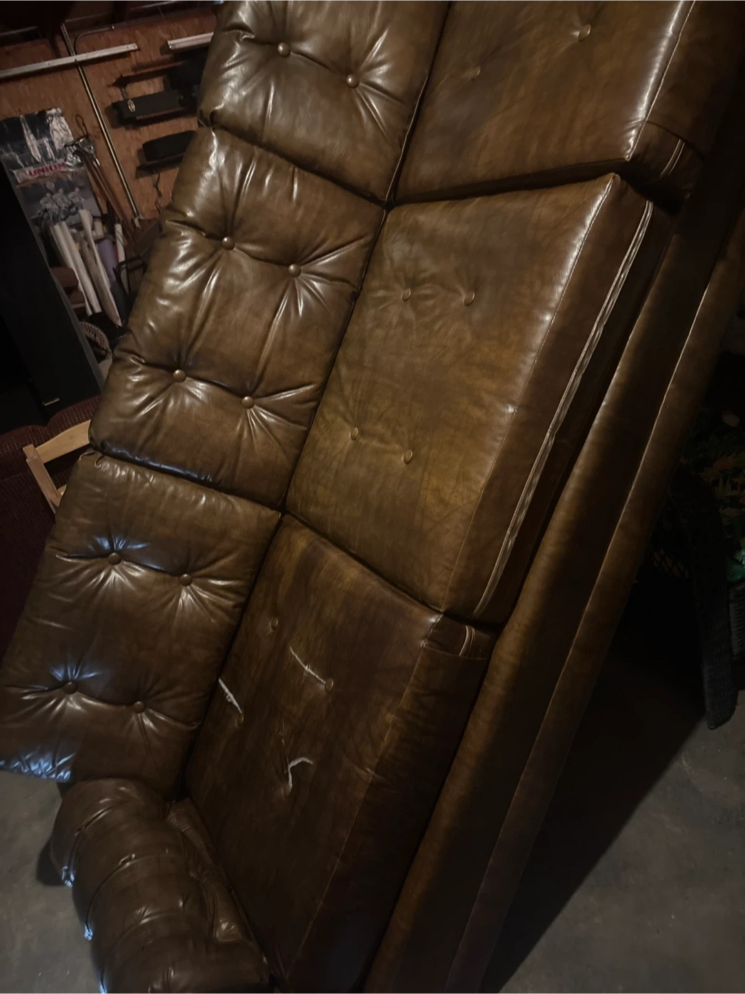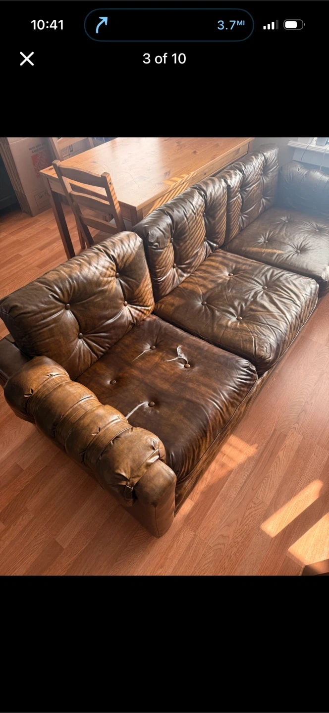 Brown Tufted Leather Sofa used as seen in pictures