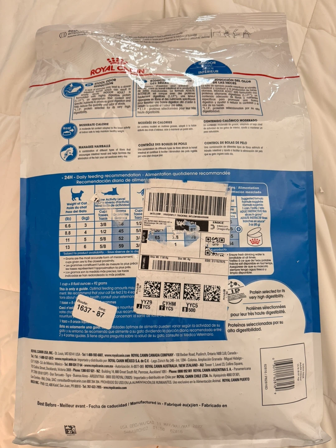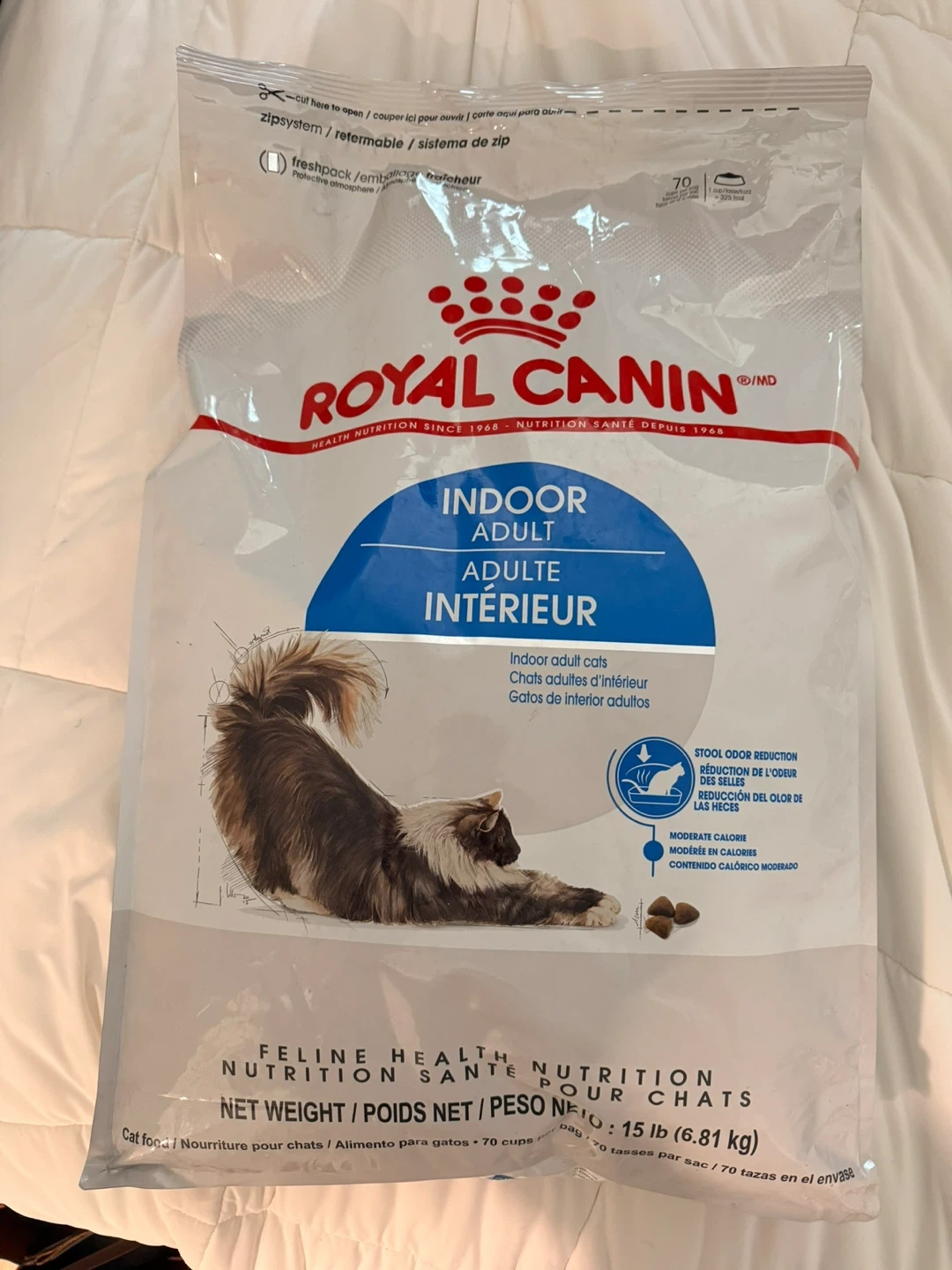 (Unopened) Royal Canin Indoor Adult cat food. It's a 15 lb bag designed for indoor adult cats. Protein selected for their highly digestible nutrients.