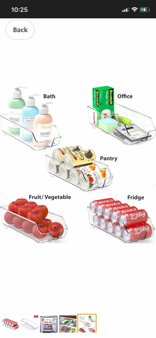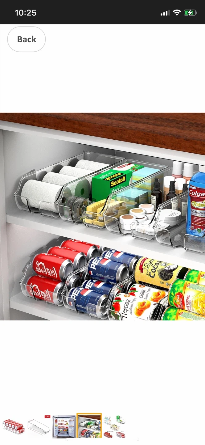 This clear plastic organizer holds up to 10 standard-sized cans, like soda or La Croix. It's made from durable plastic and keeps your fridge or pantry tidy. Perfect for use in kitchens or small apartments!