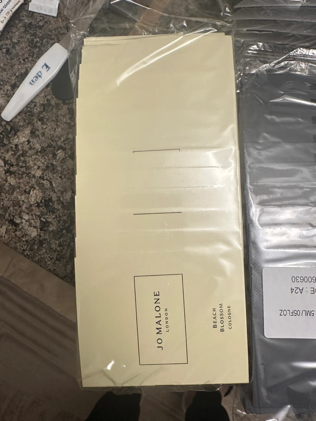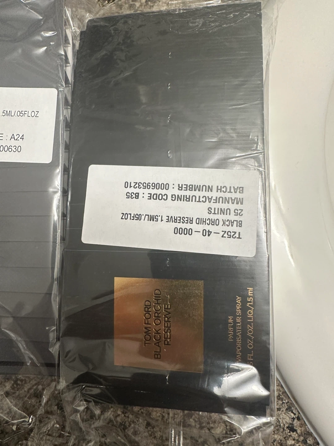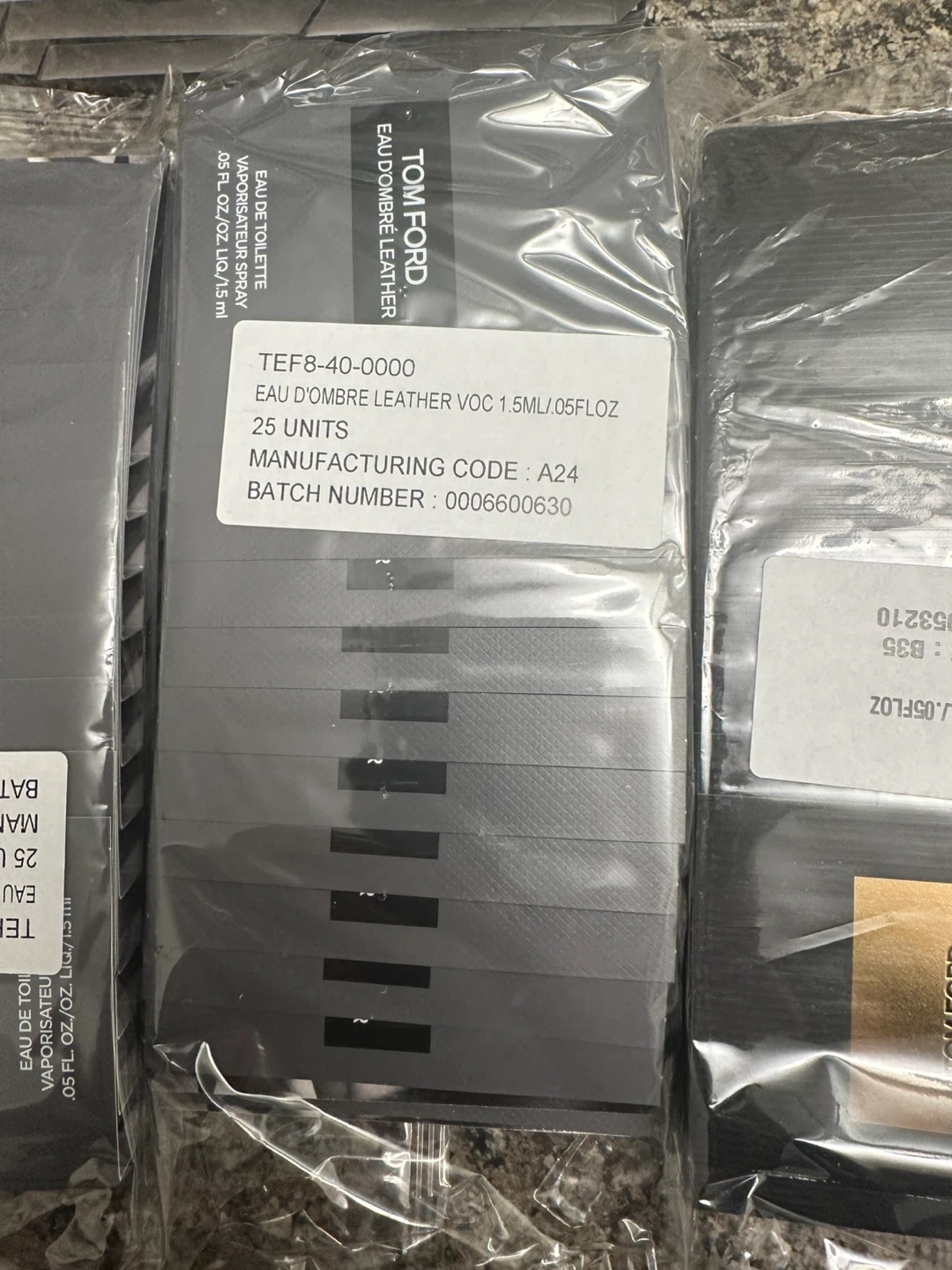 Selling assorted perfume samplers including Tom Ford Eau de Libre Leather, Tom Ford Black Orchid Reserve, Yves Saint Laurent MYSLF, and Jo Malone Beach Blossom Cologne. All are new and individually packaged. 25 pic per bag is 50$.