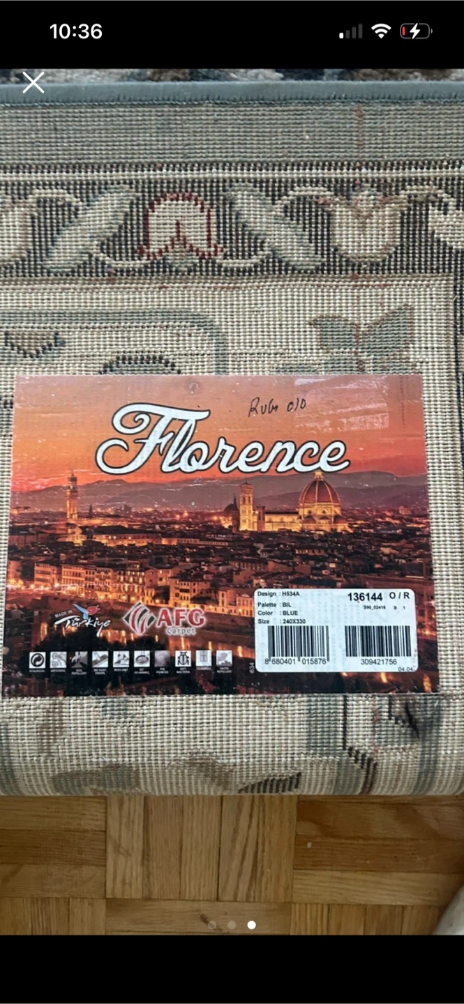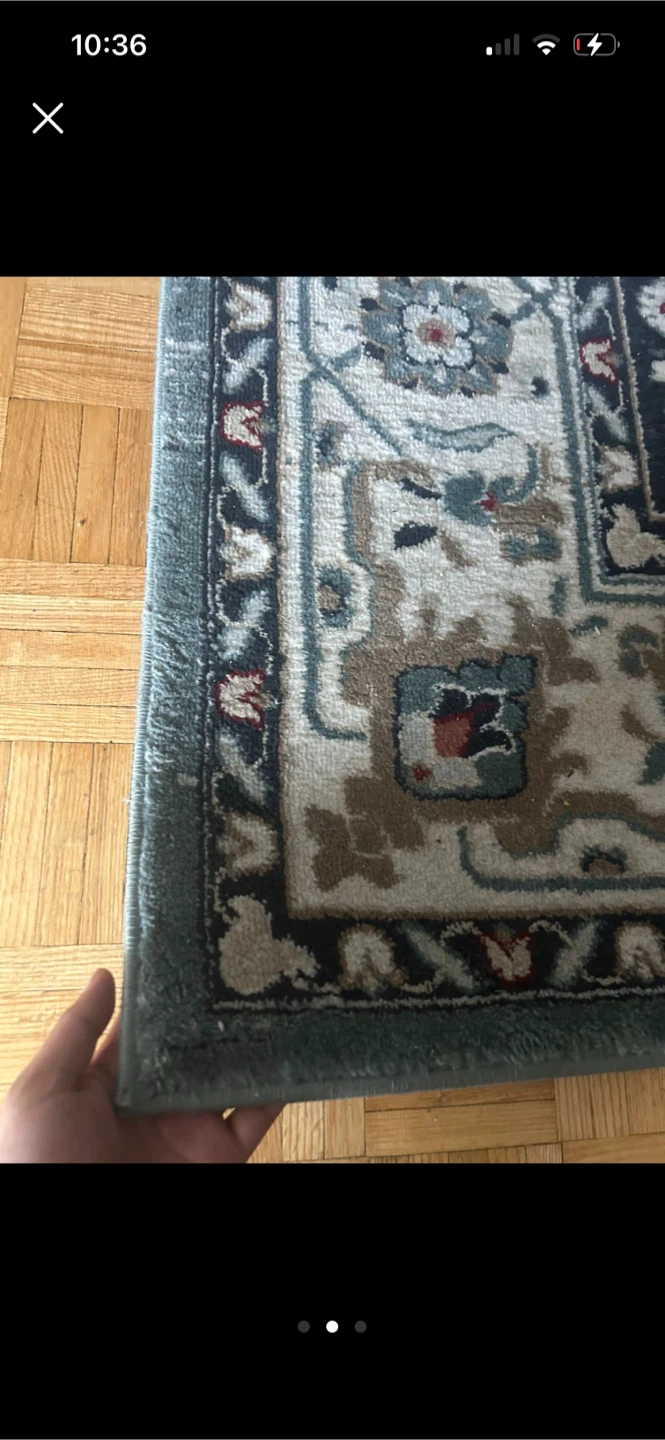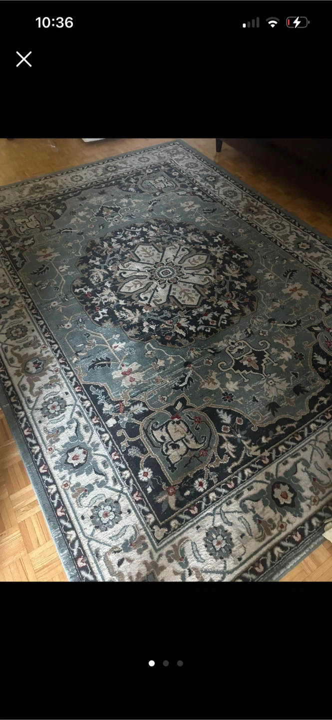 Area rug with a Persian-inspired design. Features a blue and cream colour palette. This rug is perfect for adding a touch of elegance to any room.
