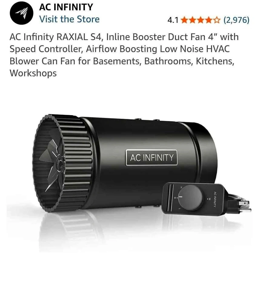 AC Infinity RAXIAL S4, Inline Booster Duct Fan 4"