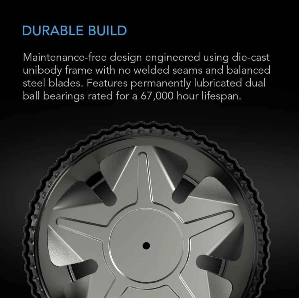 An inline fan for duct boosting designed to improve airflow in heating and air conditioning applications, and ventilate home rooms like attics, workshops, bathrooms, and kitchens. Each fan uses an easy-to-use knob controller that adjusts fan speed for your specific airflow-boosting needs. It features a unibody framework that helps reduce vibration and ensures smooth and low-resistant airflow. The matte black steel cylinder is fluted and ridged for easy and secure installation in between ducting. Its balanced steel blades have a 67,000-hour lifespan and spin using permanently lubricated dual-ball bearings to eliminate regular maintenance. This kit includes one AC-powered inline booster duct fan, a speed controller with a power plug, mounting screws, and a cable management set.
