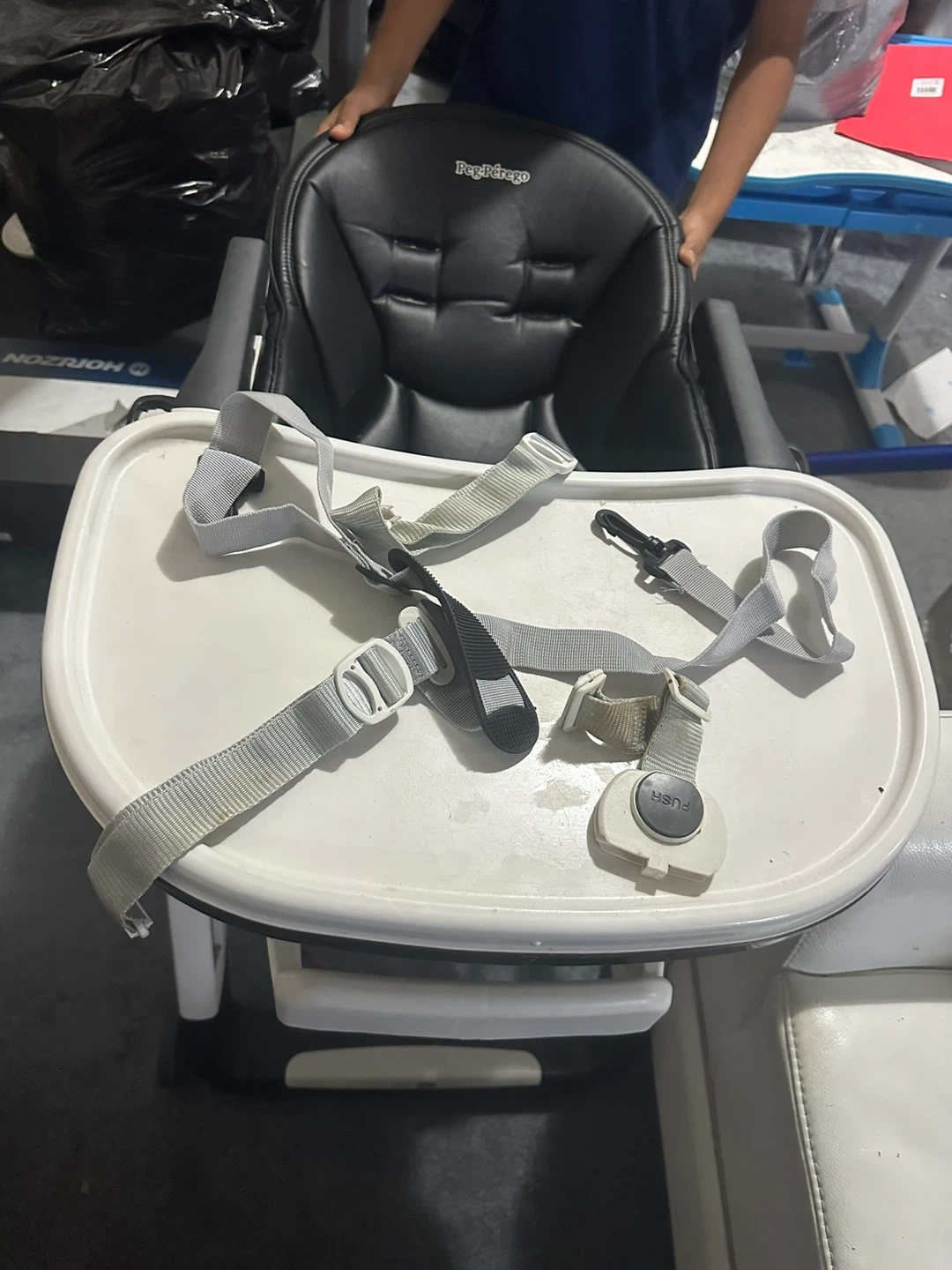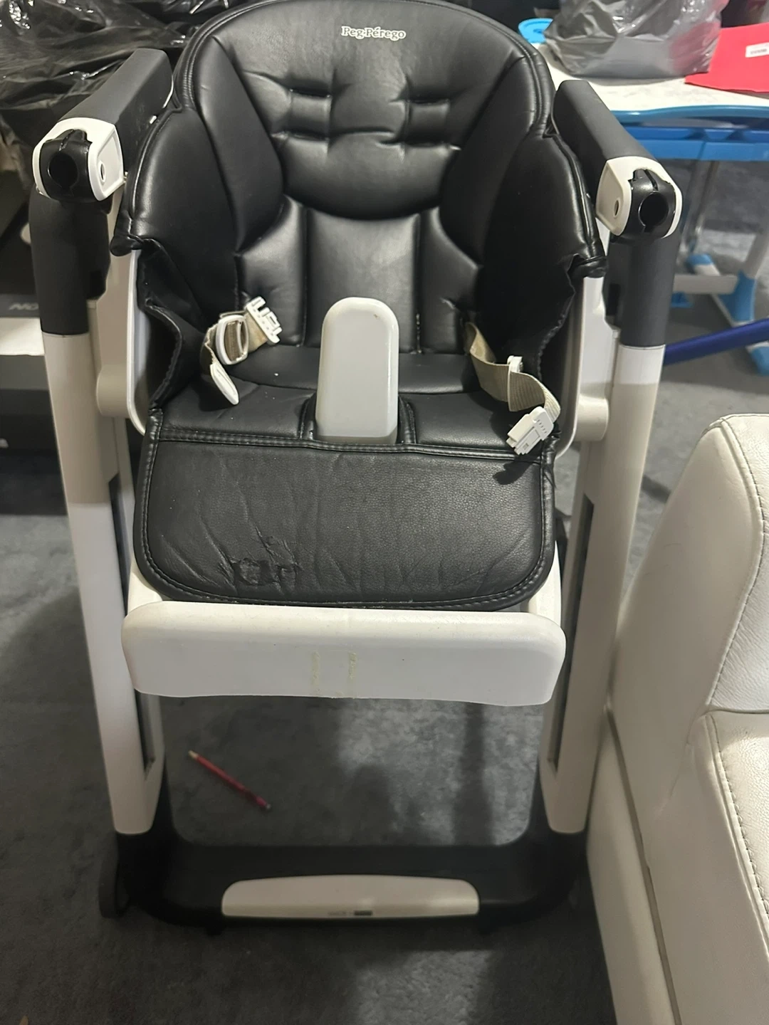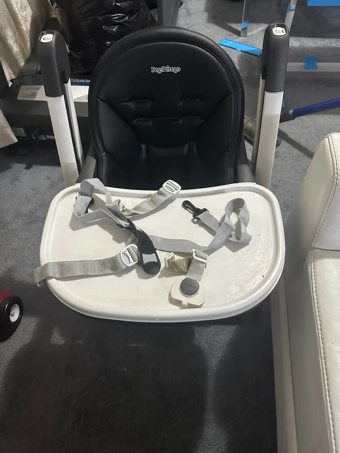 Selling a Peg Perego high chair in black. It's in good condition and ready for a new family. This high chair is perfect for feeding time and keeping your little one secure and comfortable