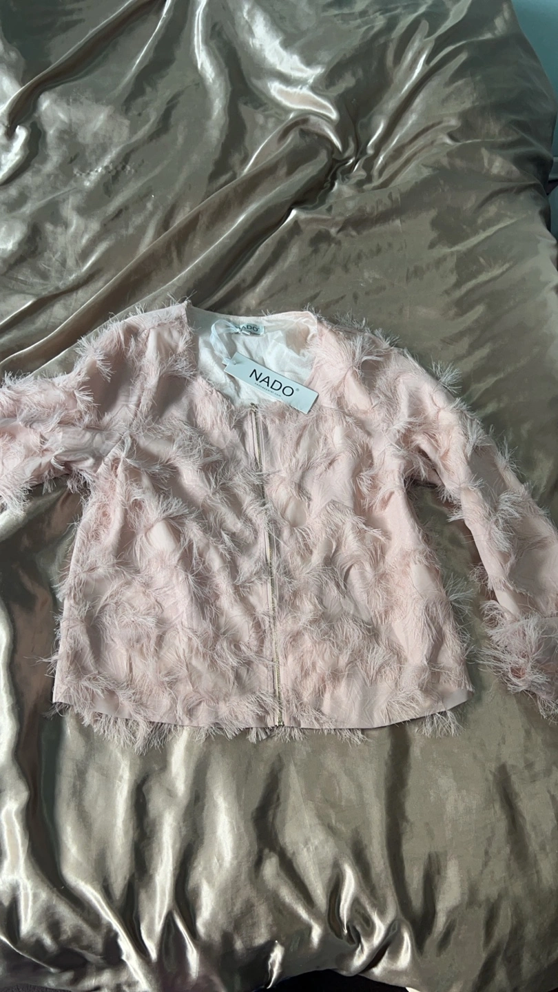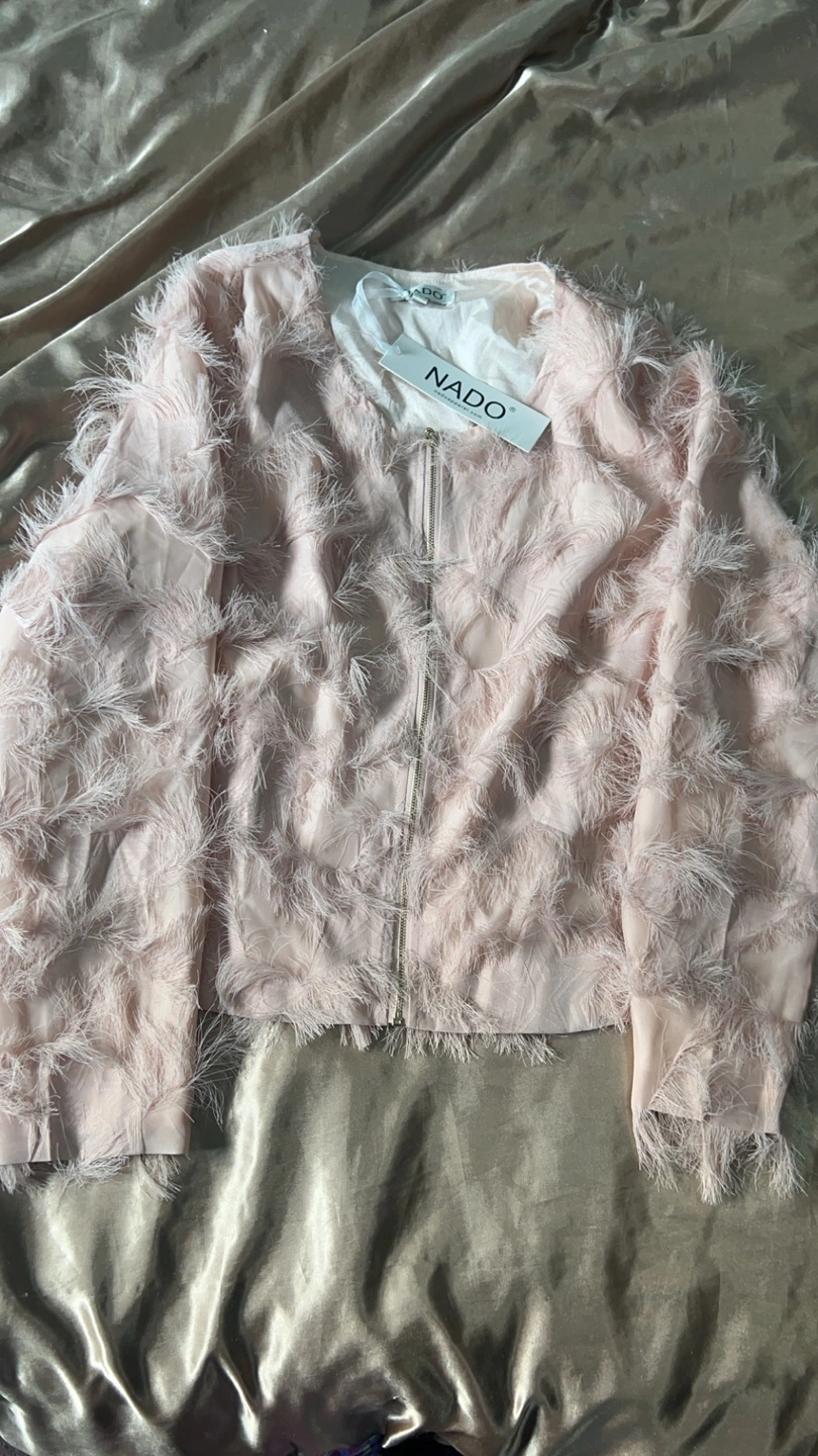 11Lightweight pink feather jacket. Long sleeves, zip closure. New with tag.