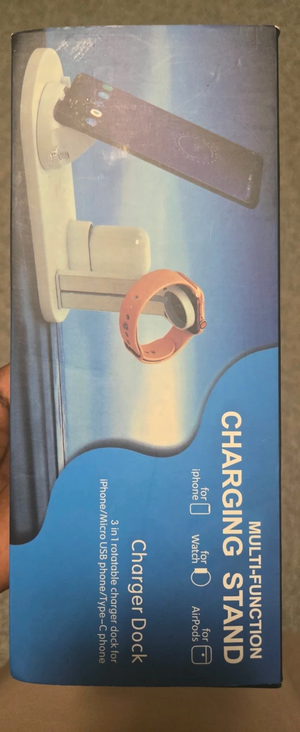 This multi-function charger dock supports iPhone, Apple Watch, and AirPods. It includes a 1-meter USB cable for charging. Keep your devices powered up with this convenient stand!