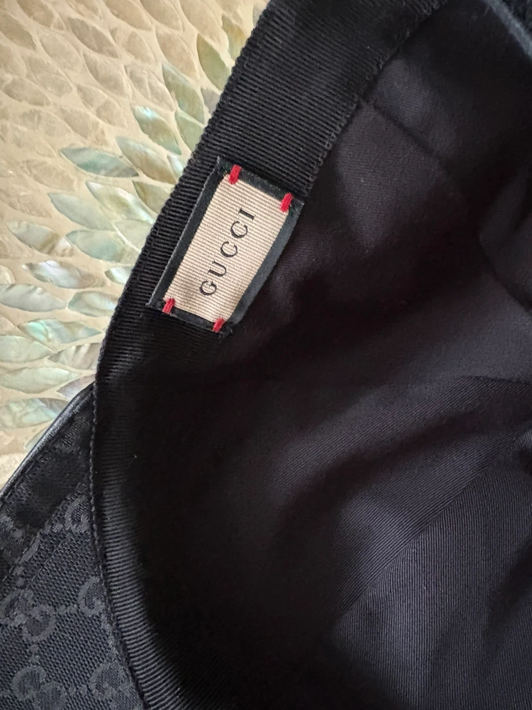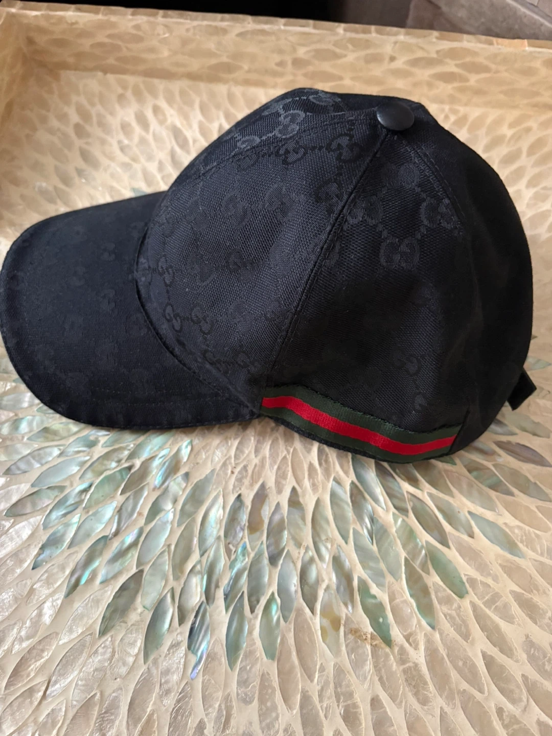 This is a black Gucci baseball cap with the signature GG pattern. It comes with the original box, dust bag, and authenticity booklet. A great accessory for any fashion enthusiast! Brand new condition! Size XL. Pick up in Chestermere.