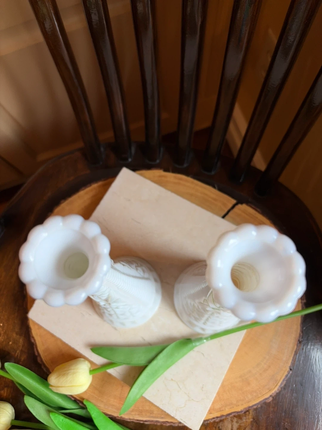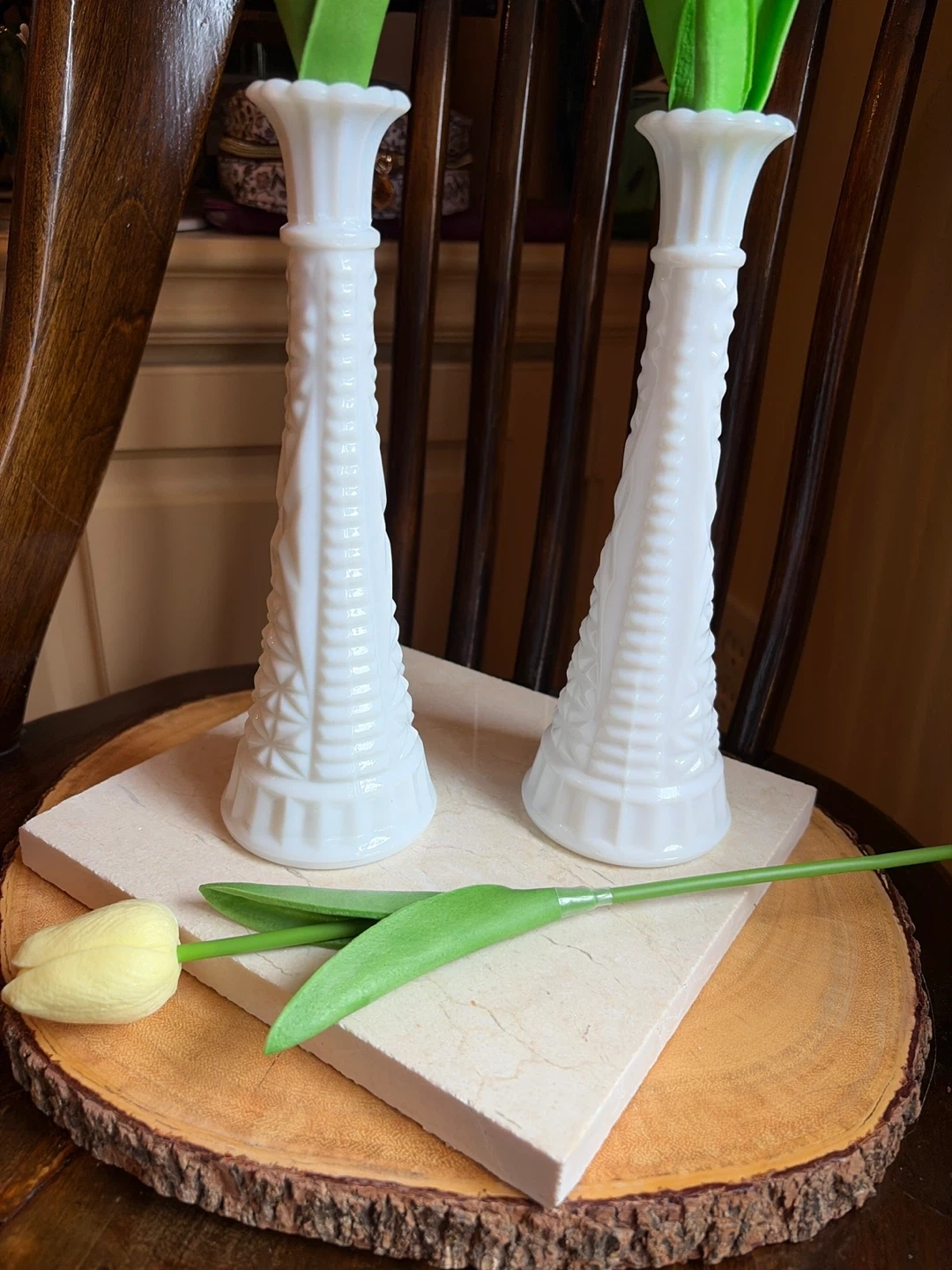 Pair of Vintage Anchor Hocking Milk Glass Bud Vases