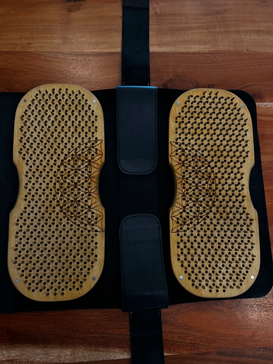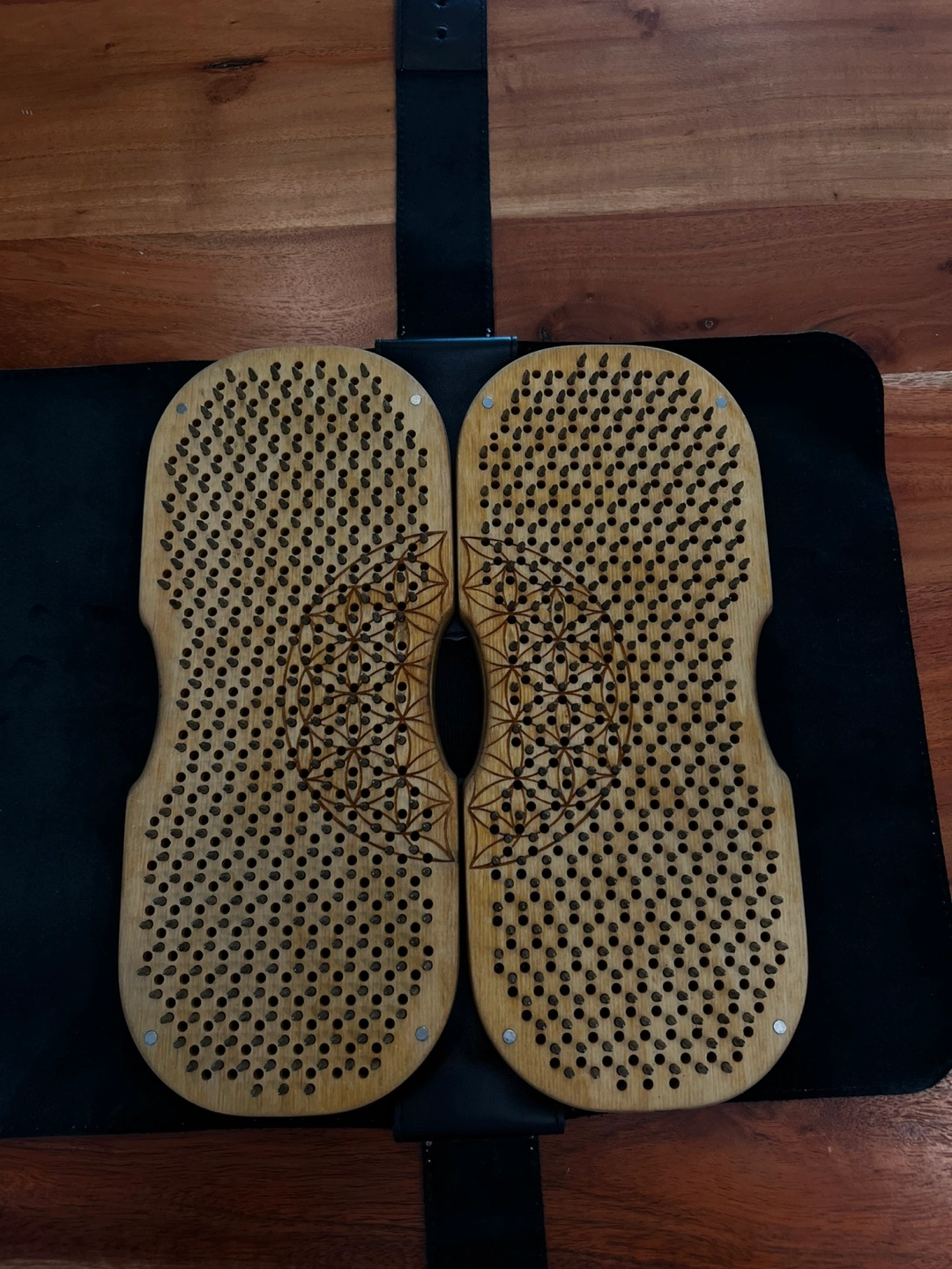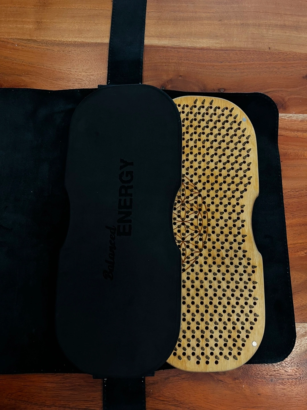Selling a Balanced Energy Sadhu Nail Board. It comes with a black leather carrying case. This board is designed to help with relaxation and meditation by applying pressure to different points on your feet. 10mm distance between the nails. For beginners and the one who practiced.