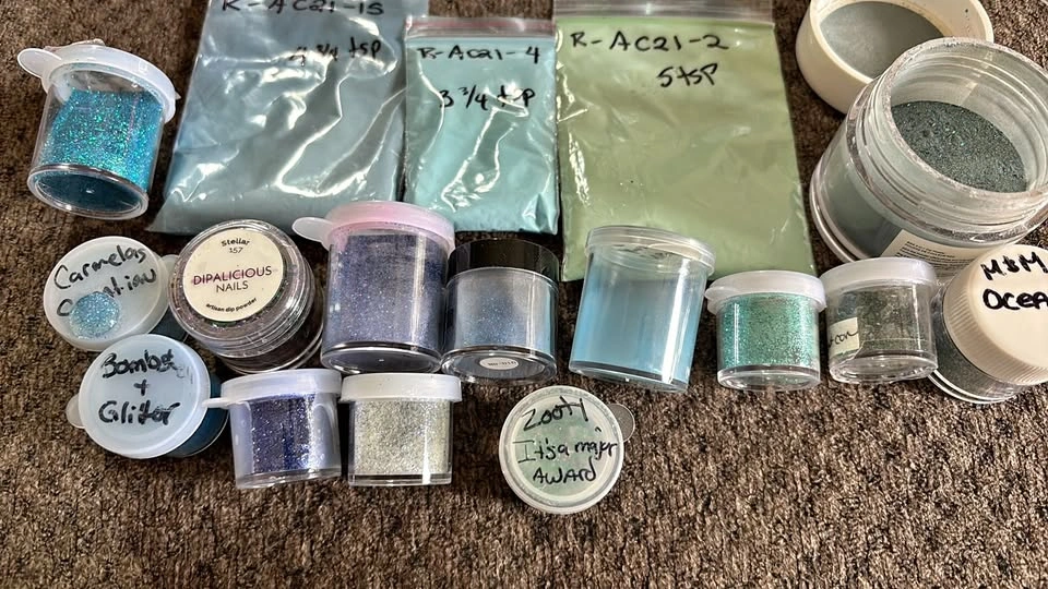 Hey everyone! I'm hoping to find someone who will take it all. I haven't dipped in a long time and I have a huge stash, I am wanting to sell it all as a lot. I am listing the colours I have below. They are depotted as thats how they used to be sold lol and to save space but i can jar them up instead if thats what you prefer. Asking $150 or best offer :) Multi glitter Tiara full 1 oz Red: Kiera —3tsp Roister 1 tsp Infatuated 2 1/4 tsp Festival — 2 tsp AC2020- day1 — 2 1/4 tsp Elenor — 1/2tsp Mistletoe — 2tsp End of summer freebie 2021 -1 1/2 tsp Garnet 1/2tsp Desire — 3 1/2 tsp Blues Confident — 1 3/4 tsp Forever 4 3/4 tsp Reed 1 1/2tsp Soleil 1tsp -sc Champion 1tsp Kai 1tsp AC2020-7 — 2 1/2 tsp AC2020-4 — 2 1/2 tsp Pink Rose quartz — 1 1/2 tsp Victoria — 3 tsp Indus 1/4tsp Margo — 2 tsp Cm2020 1 3/4tsp CM-2019 — 2+ tsp Victoria mixed with extravagant 1tsp DOR19-2 2tsp Anniversary freebie 2020 — 5 3/4 tsp Black Friday 2020 freebie #1 — 4 3/4 tsp Erica — 1 tsp Miracle — 1 tsp Purple AC2020-17 —2 tsp In bloom — 3/4 tsp Mystified — 2 1/2tsp Gloria — 4 tsp Cyber Monday 2020 freebie — 2 tsp Legend 1 1/2 tsp DOR20-11 — full jar 1/2oz Green Hyper full 1oz Anniversary sale 2021 — 2+ tsp Mystery box 42121- appletinni 5 — 5 1/2 tsp Whites silvers Phoebe — 2+ tsp Gold Black Friday freebie 2021 full 1/2oz jar Citrine 1x 1/2 oz jars Empire 1tsp Black Friday 2020 #2 2 1/2 tsp Advent calendar 2021 Day2 — 5 tsp— green Day 3 — 6tsp—red gold Day 4- 3 3/4 tsp—blue Day 5 — 4 tsp— multi glitter Day 6 — 3tsp—orange coral Day 8 — 5 tsp—red Day 10 — 4 1/2 tsp— coral Day 13 — 2 3/4 tsp —dark grey Day 14 — 4 tsp— black purple Day 15 — 4 3/4 tsp —blue Day 16 — 6 3/4 tsp —pink Day 18 — 3 tsp— pink Day 20 — 3 1/4 tsp —brown Day 21– 3 + tsp Day 22 — full 1oz jar Day 23 — 2 1/2 tsp—yellow Plus a ton of other colours not revel i can include if youd like :) Thanks!