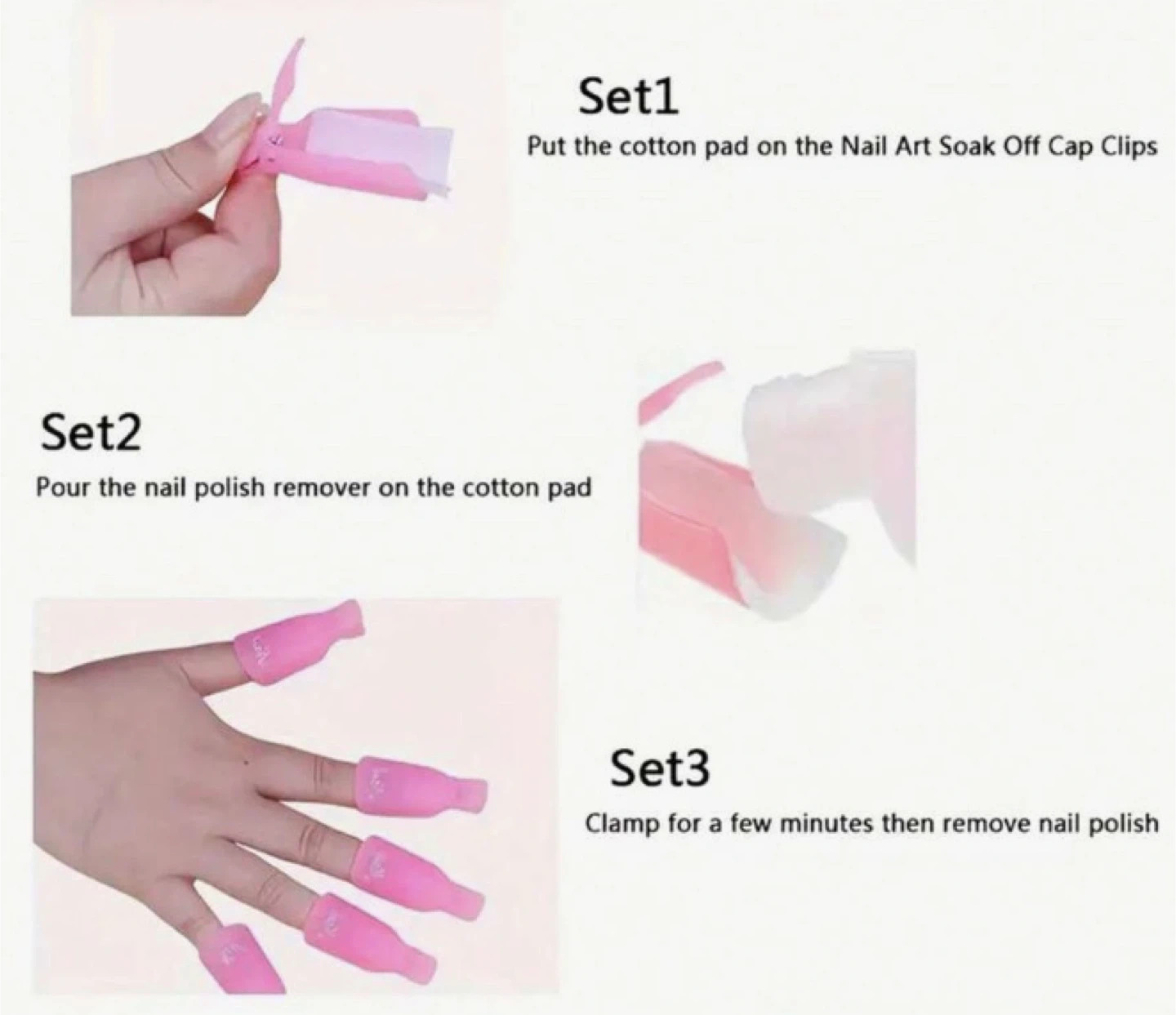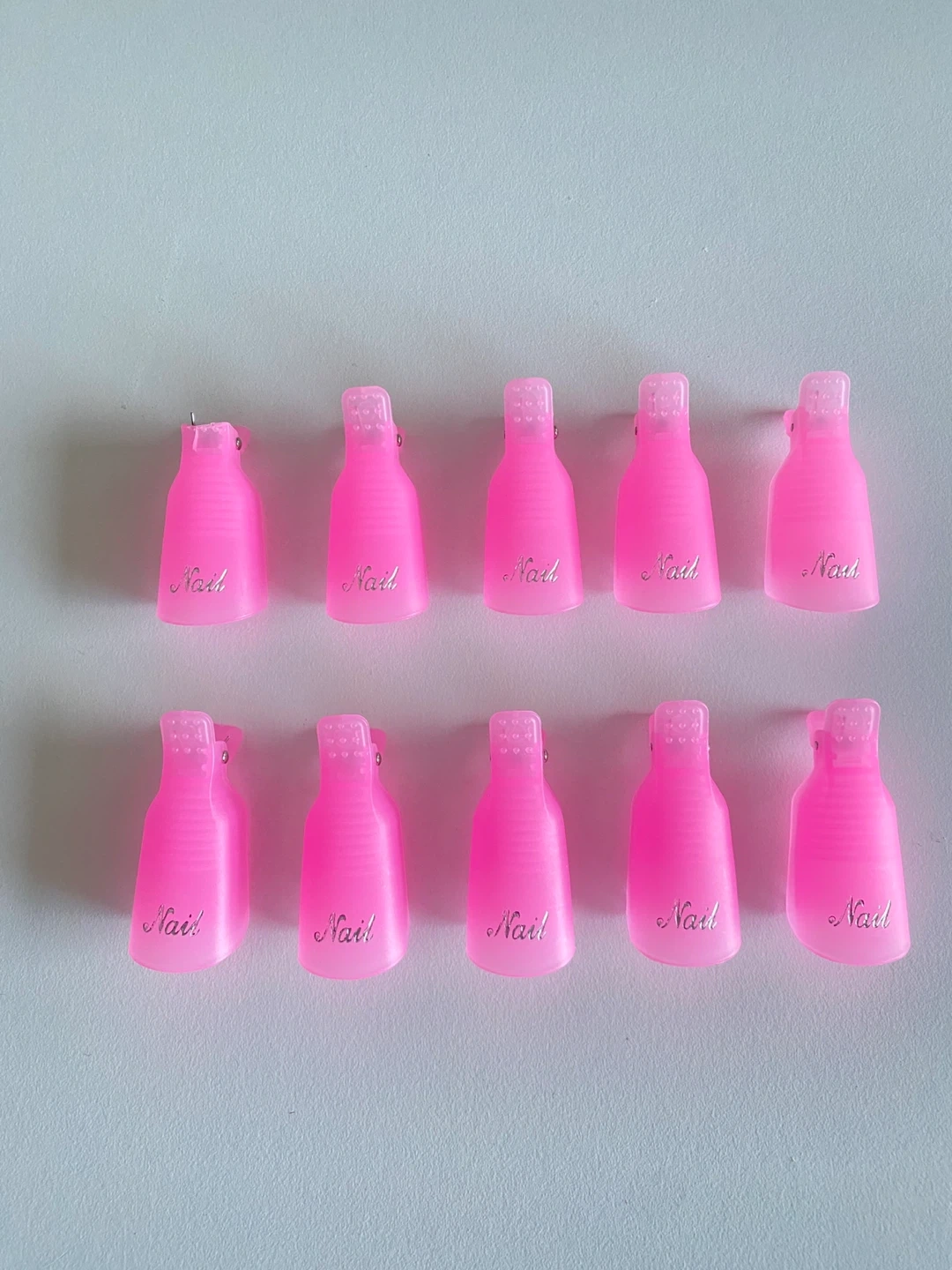 Nail polish remover clips, just soak a cotton pad in remover and put your finger in the clips, it removes effortlessly! These soak off caps fit for removing nail polishes, UV gel, etc. One piece slightly damaged but still good to use. ❤️Check out my other listings!