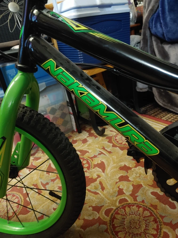 315Selling a Nakamura boys' bike in a cool green and black colour scheme! It's ready for some fun adventures and is in great condition. Perfect for a young rider learning to explore!