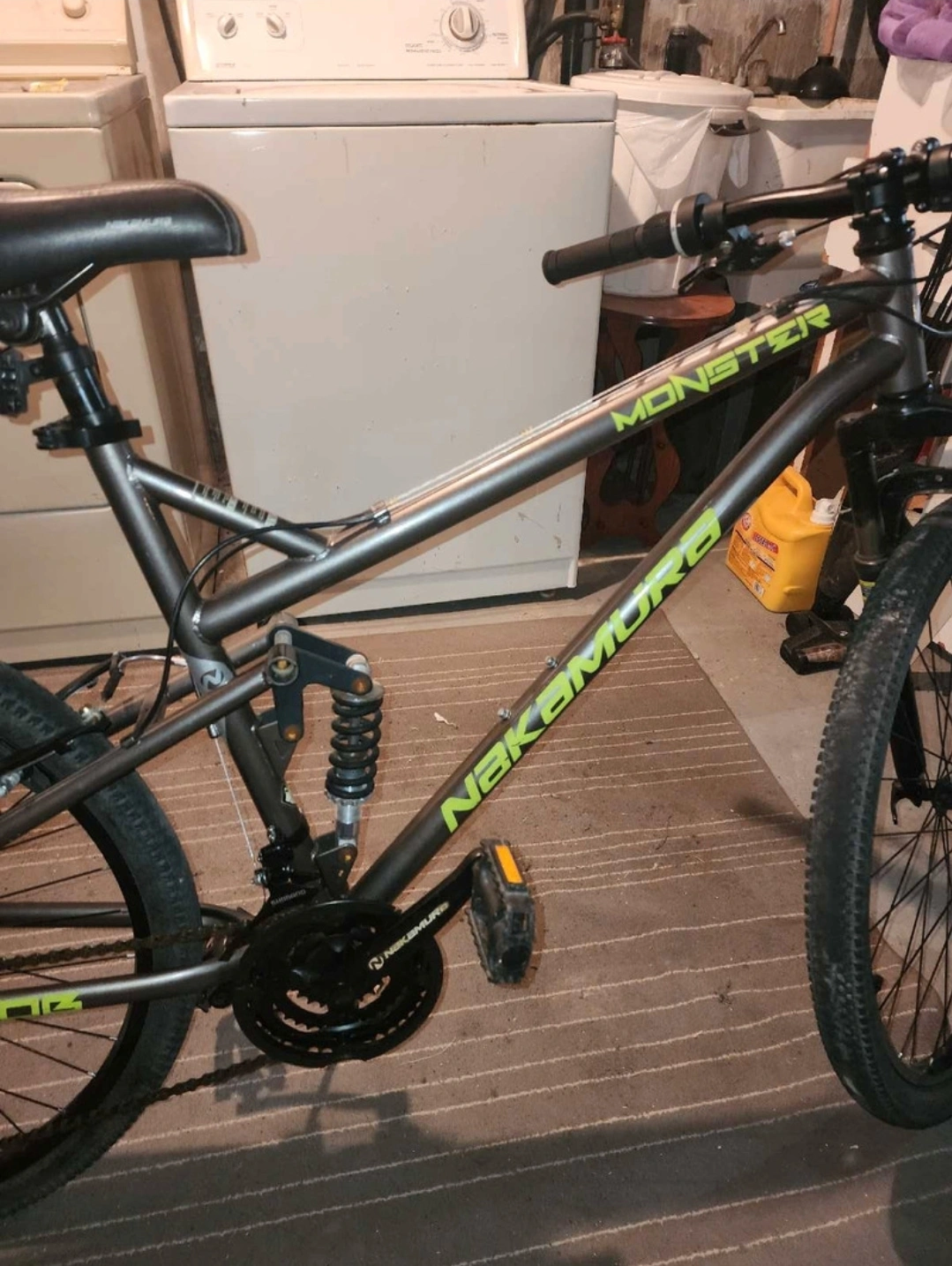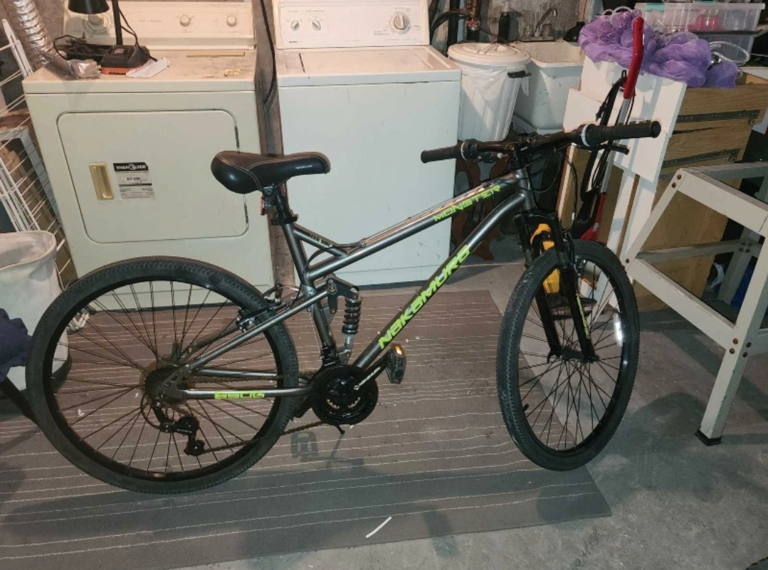 I'm selling this Nakamura monster dual suspension mountain bike. It has a new front tube and new grips. It features 27.5x2.0 tires and is a 21 speed. (3x7) has a large frame, good for someone up 6'0. Asking $200 obo