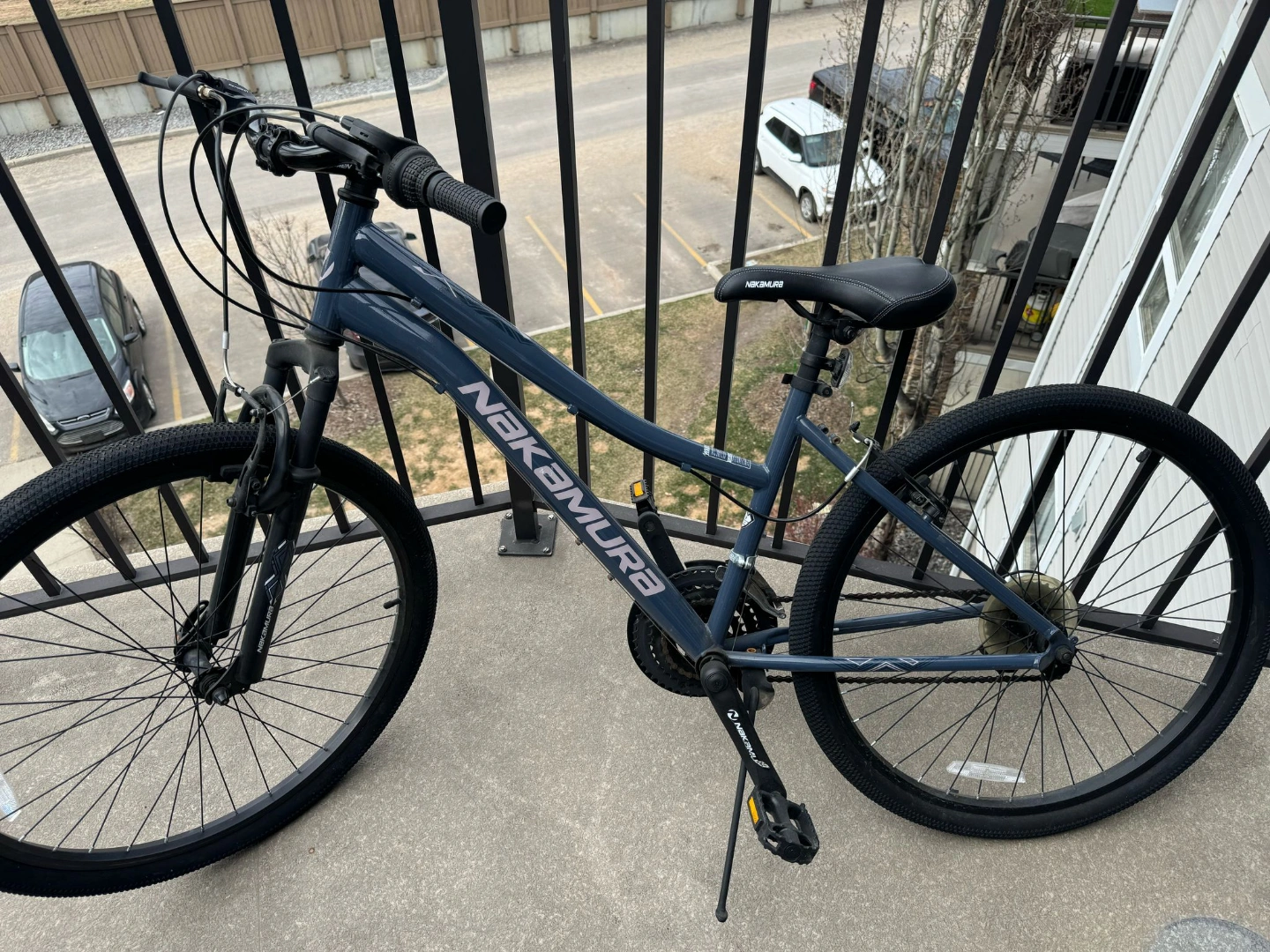 12Nakamura Women's Inspire 26" Mountain Bike, 18 Speed, Steel Frame, Rim Brakes, Hardtail Primary Colour: Purple Frame Size (cm): 38.1 bought for $200 and used hardly for 10 km over a weekend.