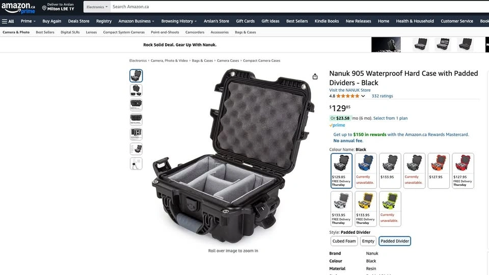 Never used Nanuk case 905 with padded divider for sale. Selling for $99—it's $125 plus tax brand new on Amazon. Interior Dimensions L9.4" x W7.4" x H5.5" | Exterior Dimensions L12.5" x W10.1" x H6.0" | Includes padded divider insert with lid foam. Waterproof (IP67 rated), dustproof, shockproof. Automatic purge valve equalizes pressure on the inside of the case when travelling. NK-7 resin is incredibly impact resistant. NANUK cases are designed to survive the toughest journey. Two Powerclaw (patented) triple action latches molded in super-tough Nylon keep the case securely closed using compressive force. Made in Canada. Lifetime Guarantee on the case | 1 year warranty against manufacturing defects on the padded dividers. This case comes with padded dividers which are easily tailored to your needs with repositionable hook and loop fasteners, and are designed to easily organize and protect your equipment. Interior Dimensions NANUK 905 Case L 9.4 x W 7.4 x H 5.5. Waterproof Seal- Automatic Pressure Release Valve-100 Percent Stainless Steel Hardware-Stackable. PowerClaw Latching System- Clamps the case tightly closed using compressive force while the integrated slide lock prevents the case from opening during transport or when dropped. Soft Grip Foldable Handle and integrated Hardware for an Accessory Strap and Padlock (Lock and Strap Available Separately)