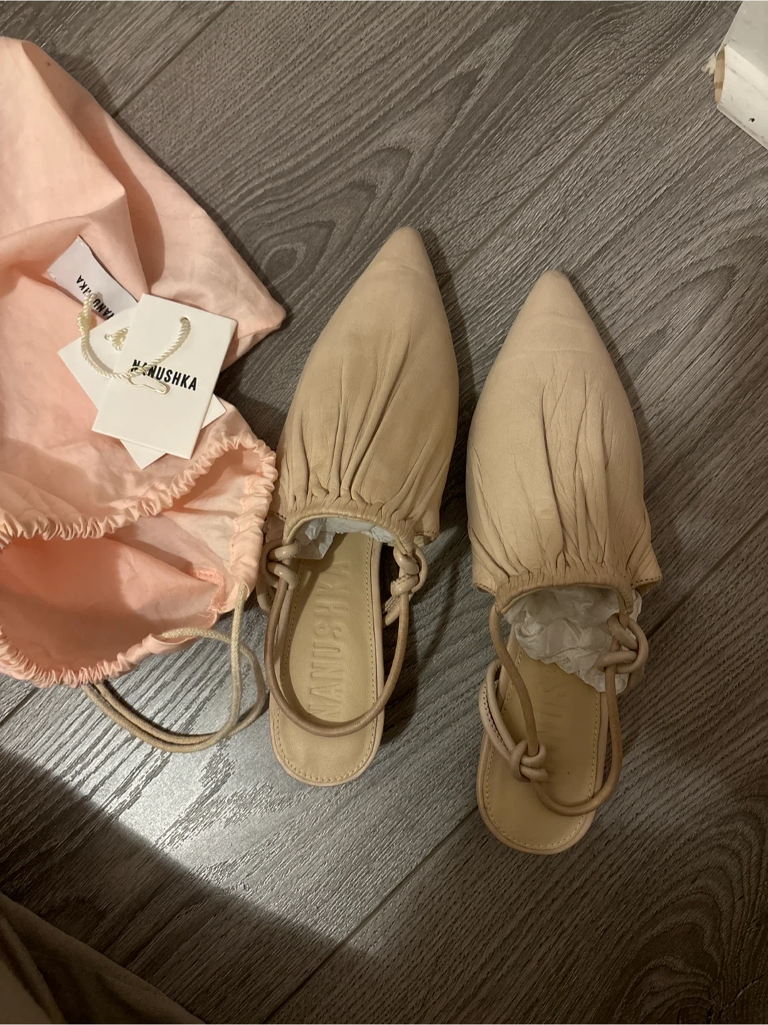 60Selling a pair of Nanushka heels in a lovely beige colour. They are a European size 37. Comes with the original dust bag!