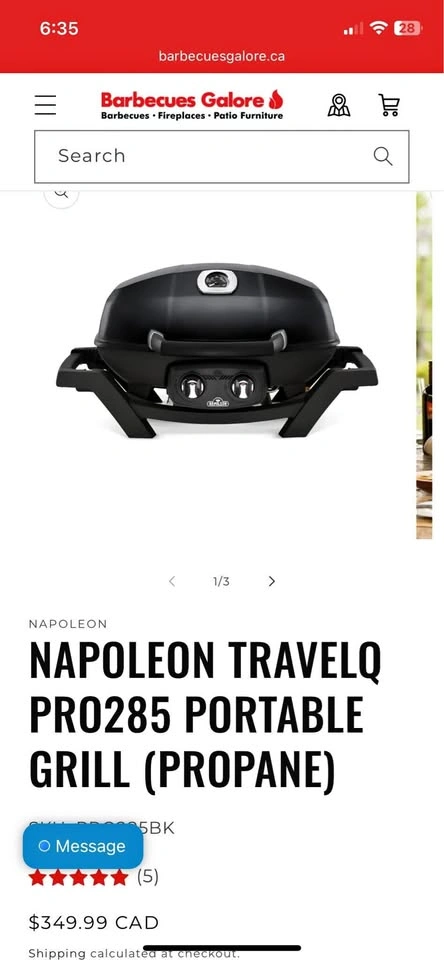 Napoleon TravelQ Pro285 Portable Grill (Propane) and Stand. Comes with tank of propane (half) and bbq tools if interested. The stand has two removable trays that can be used to hold plates etc while bbqing. Kept on an apartment balcony and covered with a tarp so in great condition - only a few years old. Sad to see it go, but moving and can't bring it with us. Pick up only near King and Jameson