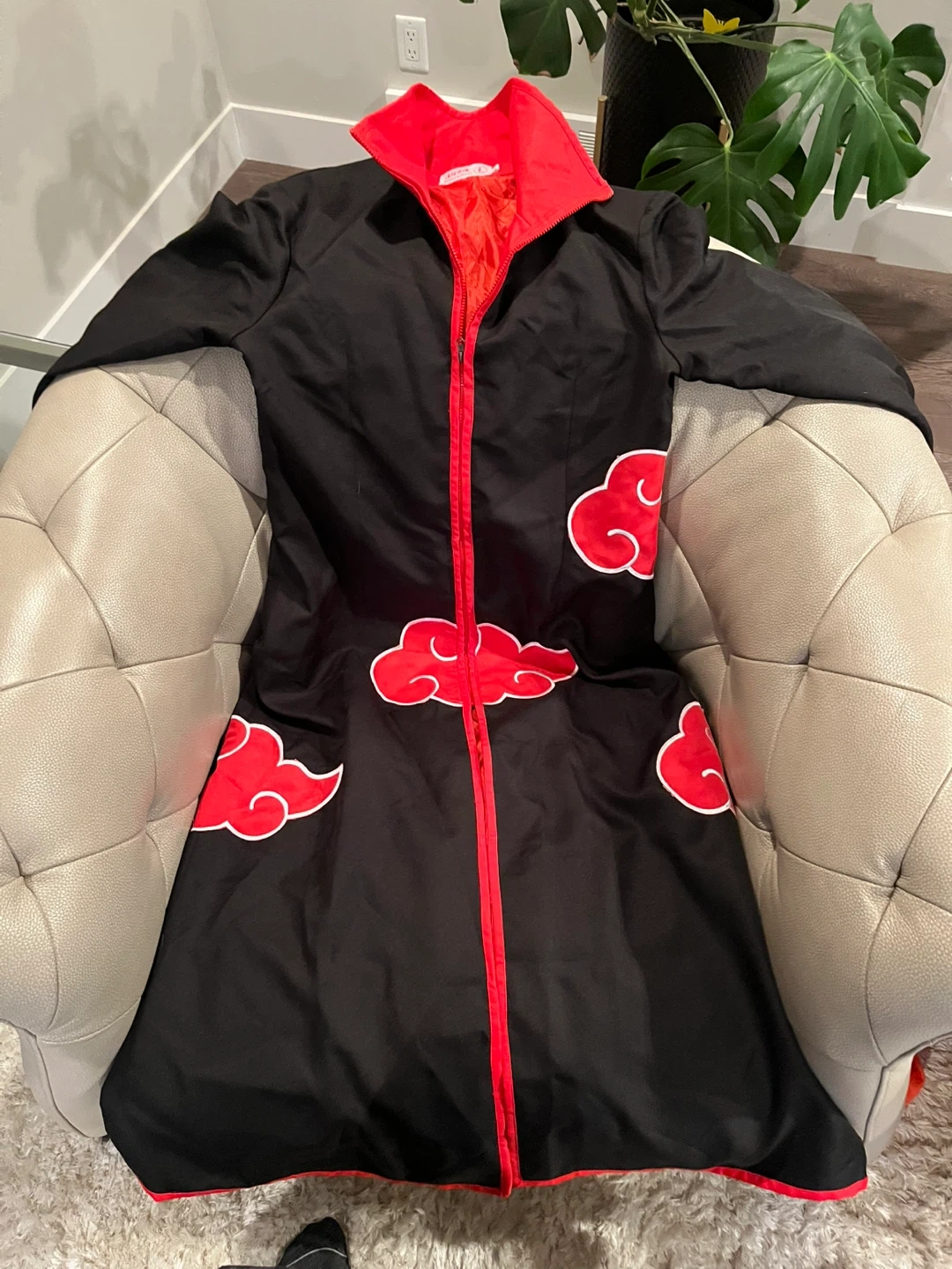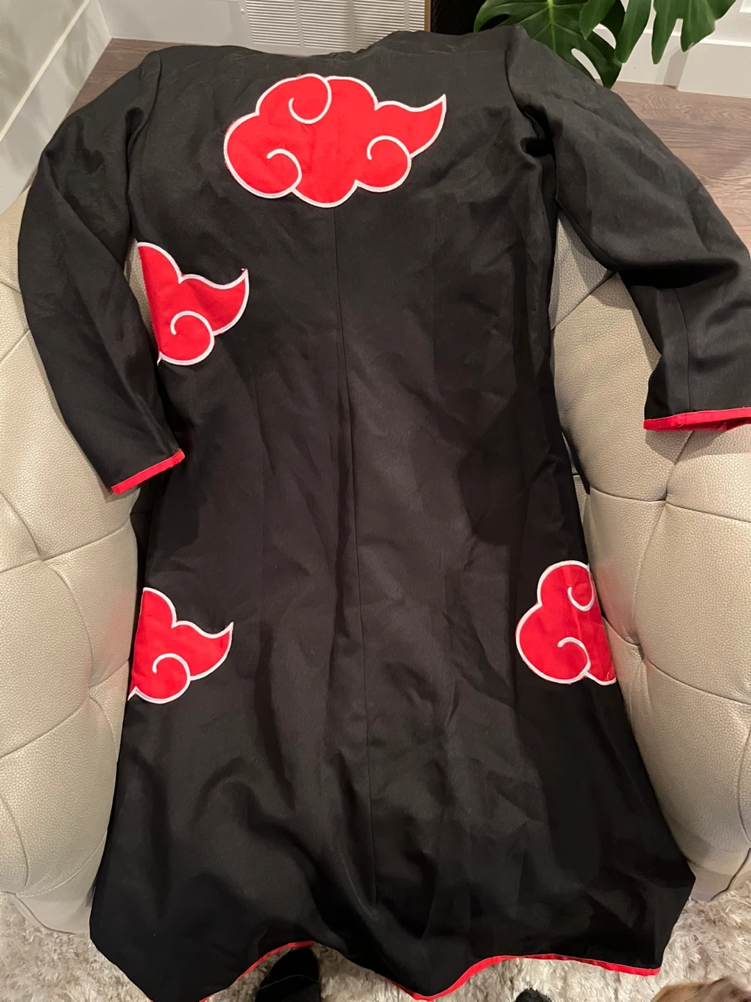 16Selling an Naruto Akatsuki robe, perfect for cosplay or anime fans! It features the iconic red cloud design on a black robe with red accents. Worn once. Excellent condition. Size XL