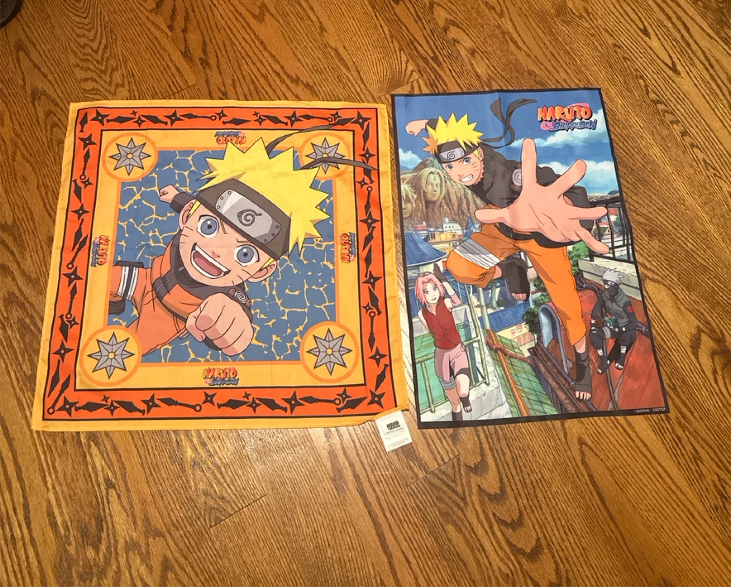 10Selling two Naruto Shippuden wall posters! One features Naruto's face and the other is a full-body shot with Sakura. Surged openings for hanging as per last photo Perfect for any fan's room or collection