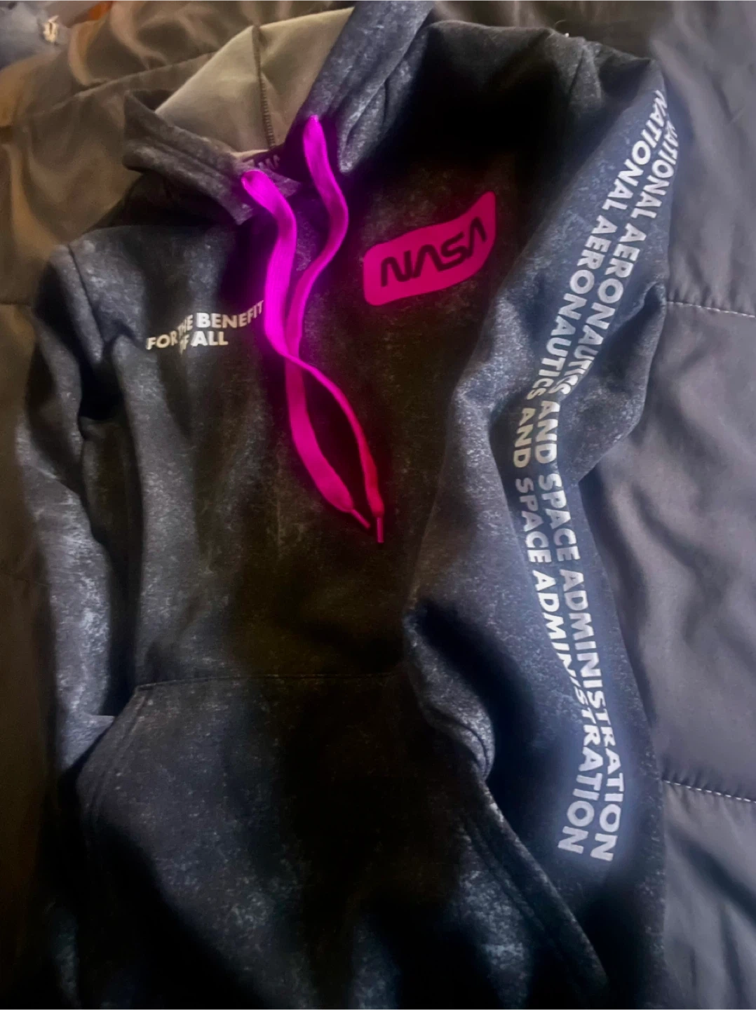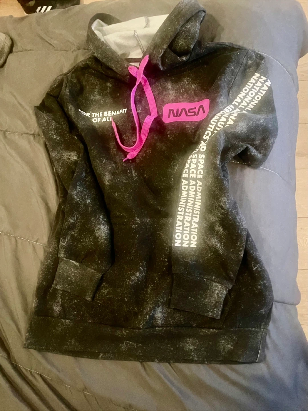 Selling a NASA hoodie! It's a black hoodie with the NASA logo on the front and "NATIONAL AERONAUTICS AND SPACE ADMINISTRATION" printed on the sleeve. Brand new.