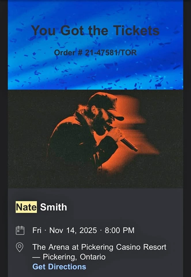 Two general admission tickets for sale for less than face value at the Pickering Casino. Show day is show #2 November 14. $120 for the pair (paid $136)