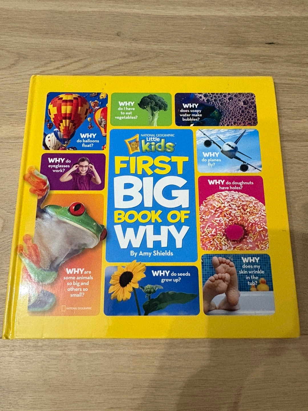 Selling a National Geographic Little Kids First Big Book of Why by Amy Shields! It's a great book for curious little minds, answering all sorts of questions like why do balloons float and why do doughnuts have holes