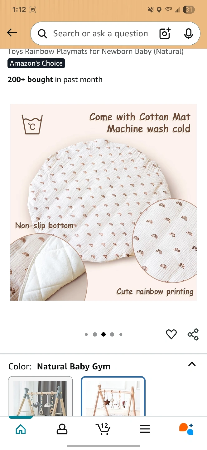 118Selling a baby gym with a cute rainbow playmat! The playmat is machine washable and has a non-slip bottom. The baby gym measures 23 inches in height and 21 inches in width, perfect for your little one to enjoy and explore. It comes with cotton mat and cute rainbow printing!