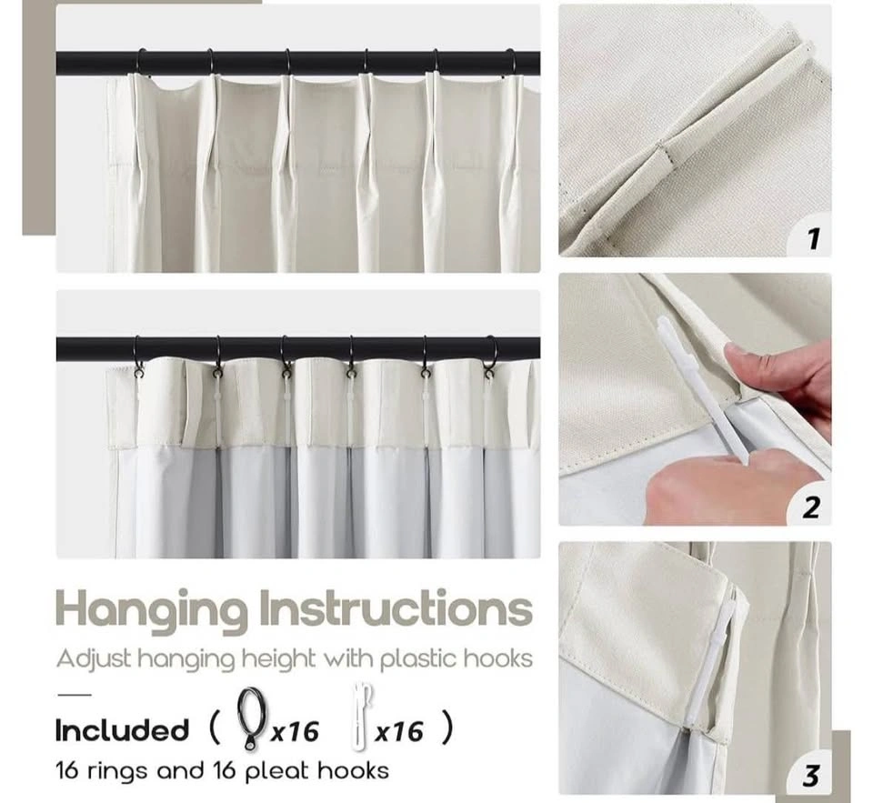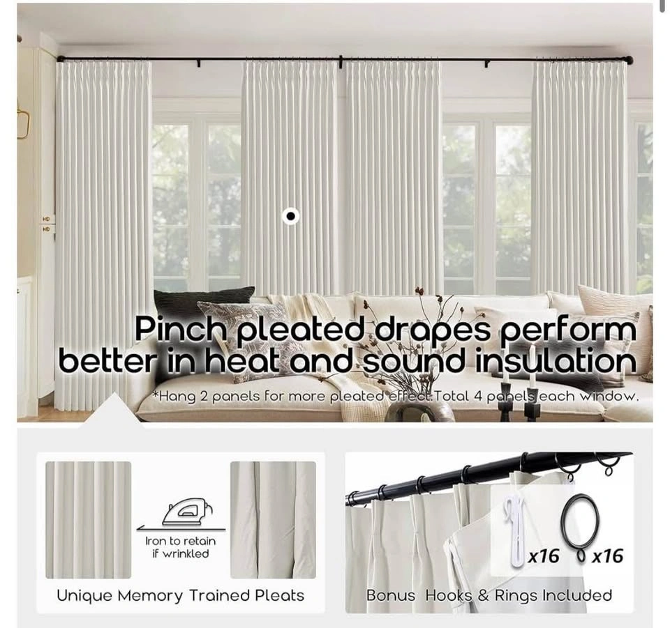 484Brand new SHINELAND Pinch Pleated Curtains for Living Room 102 Inch Thermal Natural Linen Blackout Curtain 2 Panels Sound Proof Noise Cancelling Bedroom Drapes Cream 40W x 102L Inch 2 panels No holds Price is firm