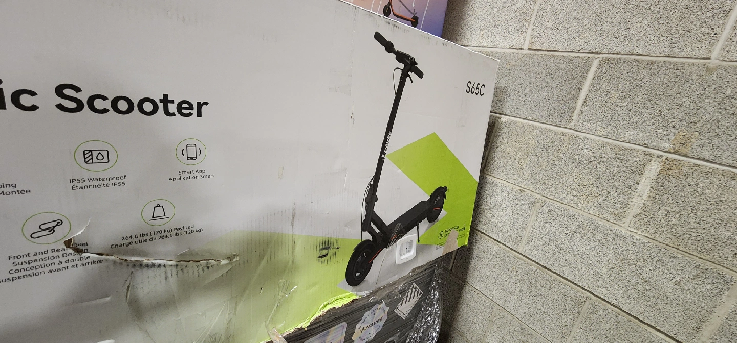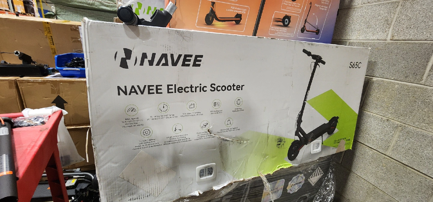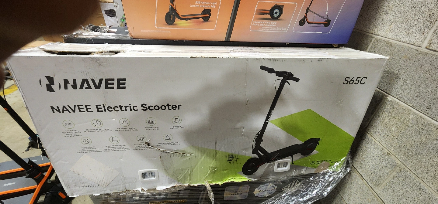 Selling a brand new NAVEE S65C Electric Scooter, still in its original box! Features include front and rear suspension design, IP55 waterproof rating, and smart app integration. It can handle up to 264.6 lbs (120 kg) load. Great for getting around town!