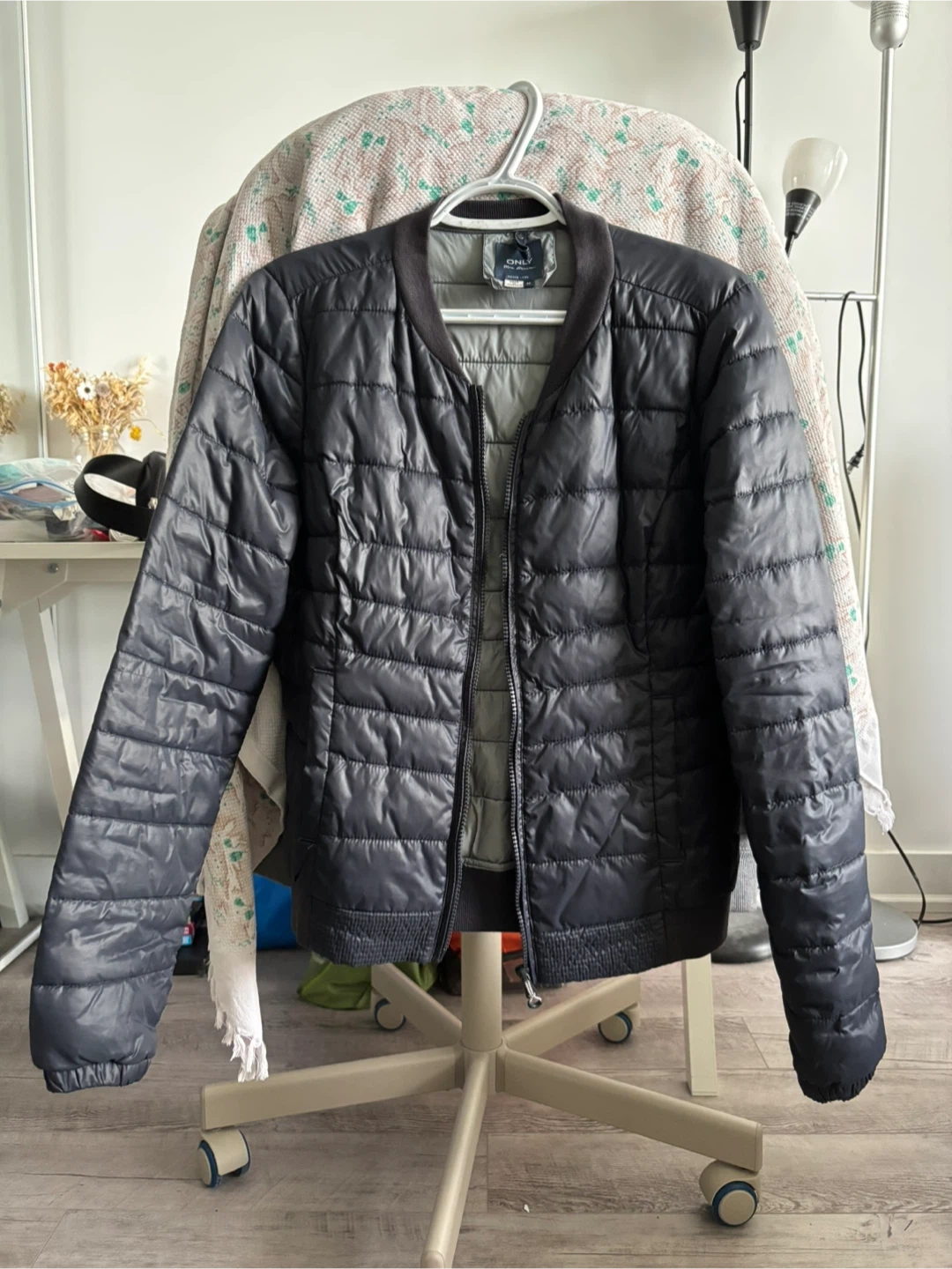 215Selling a gently used navy blue puffer jacket in size medium. It's in great condition and perfect for cooler weather! The material is lightweight and comfortable, making it easy to wear.
