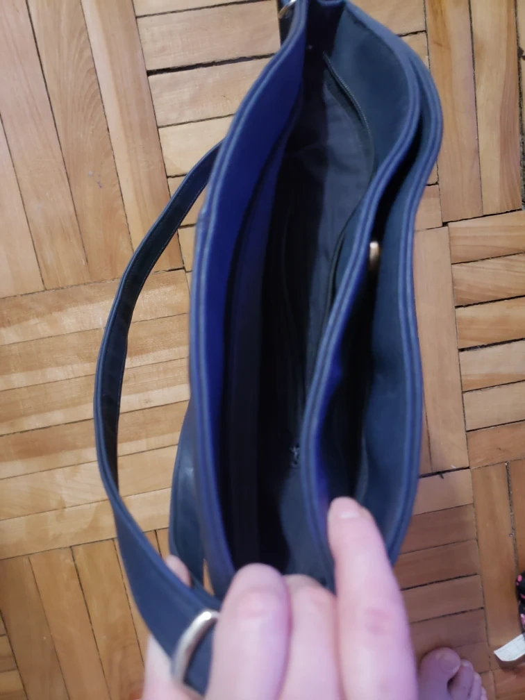 733Dark blue shoulder bag. Simple design, one main compartment. Adjustable strap. Pre-owned.