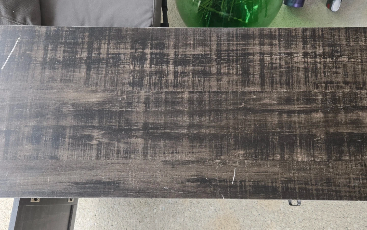 Dark wood TV stand with a built-in electric fireplace. It features two cabinet doors on either side and an open shelf above the fireplace. The fireplace has realistic flame effects and a heating element.
